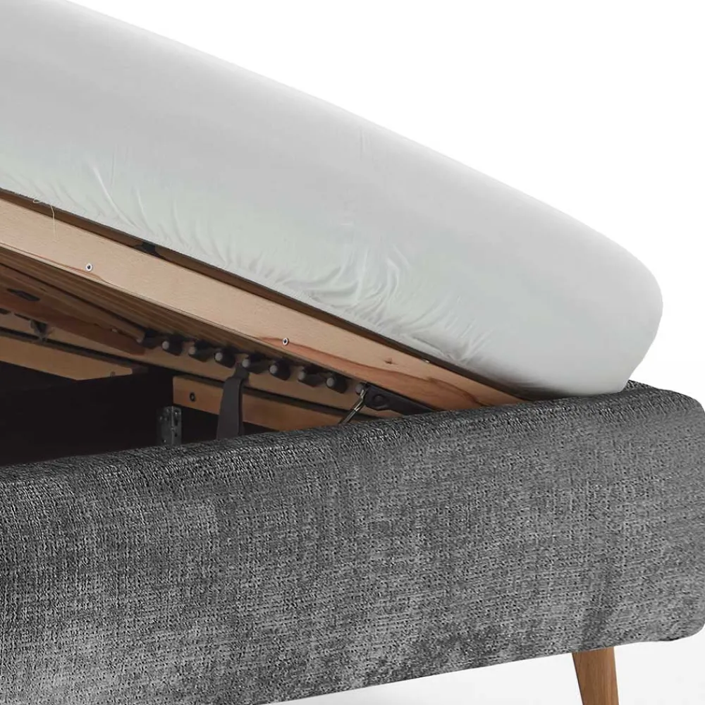 - Der belüftete Bettkasten bietet viel Stauraum, Lattenrost seitlich per Gasdruckfedern hochklappbar