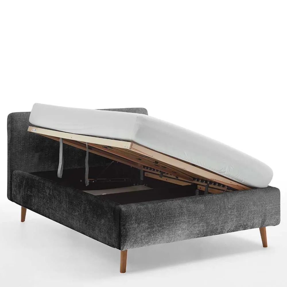 - Trendstarkes Polsterbett in Anthrazit und Eichefarben