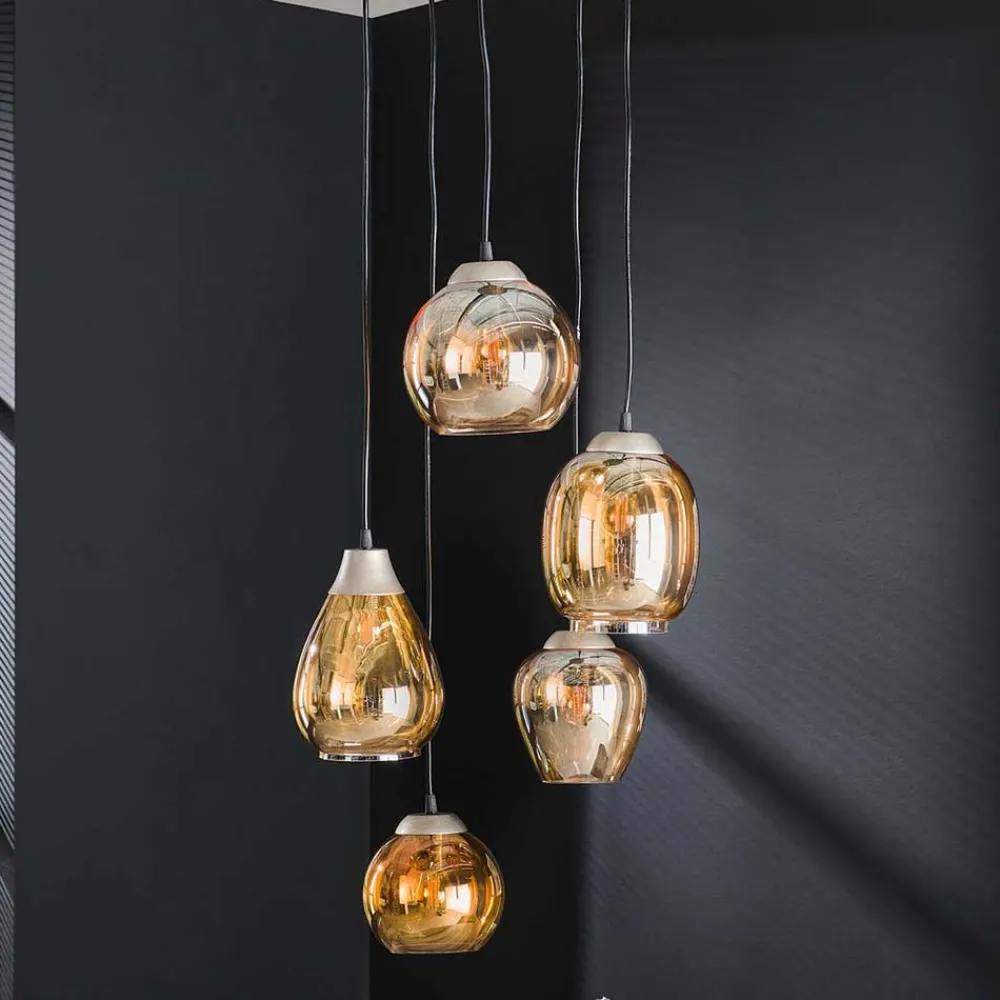 - Lieferung ohne Leuchtmittel, fünf Fassungen E27, max. 60W, Schutzklasse IP20