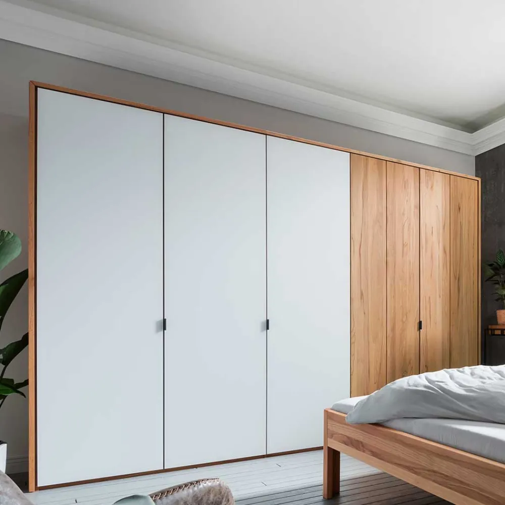 - Ausdrucksstarker Kleiderschrank in Kernbuchefarben und Weiß matt