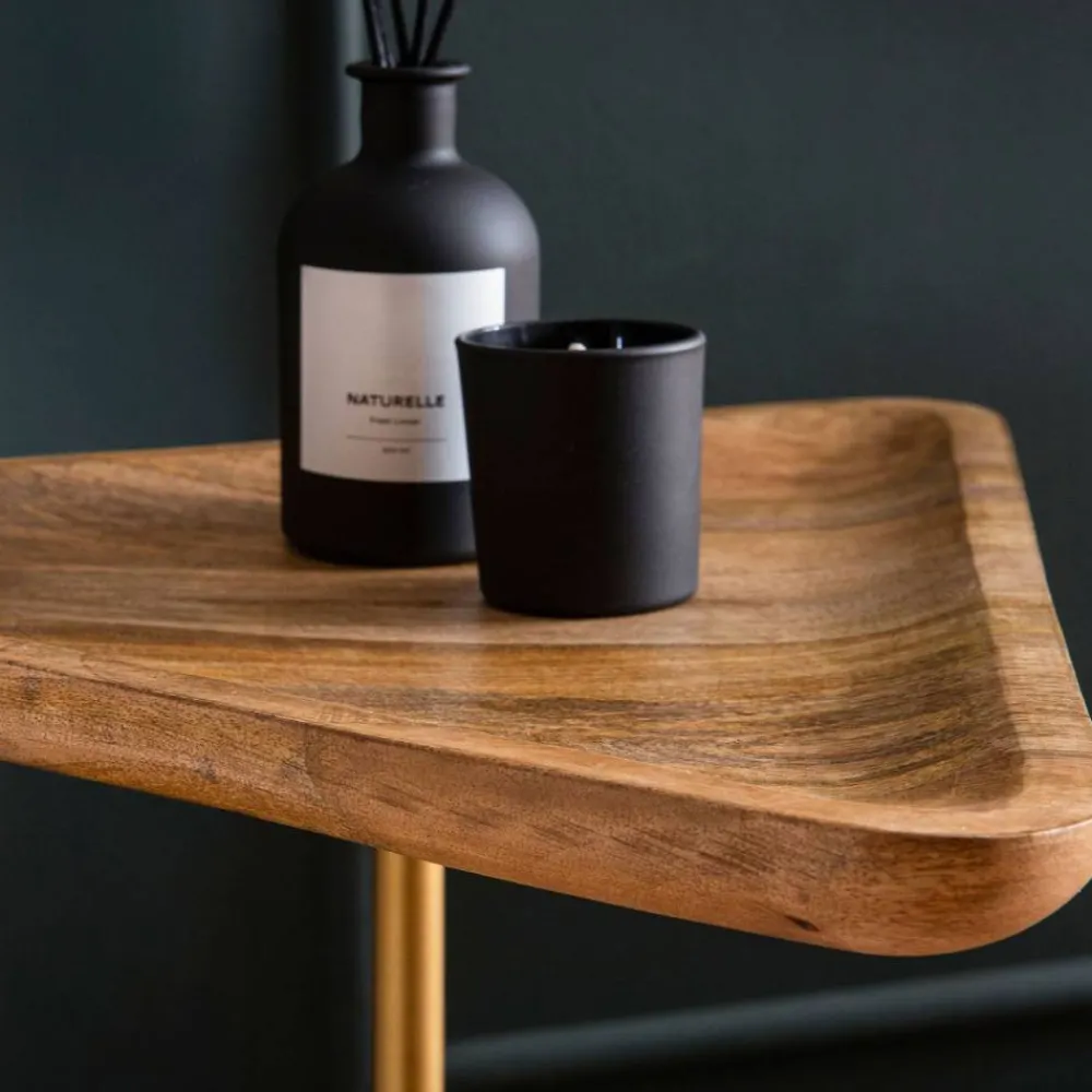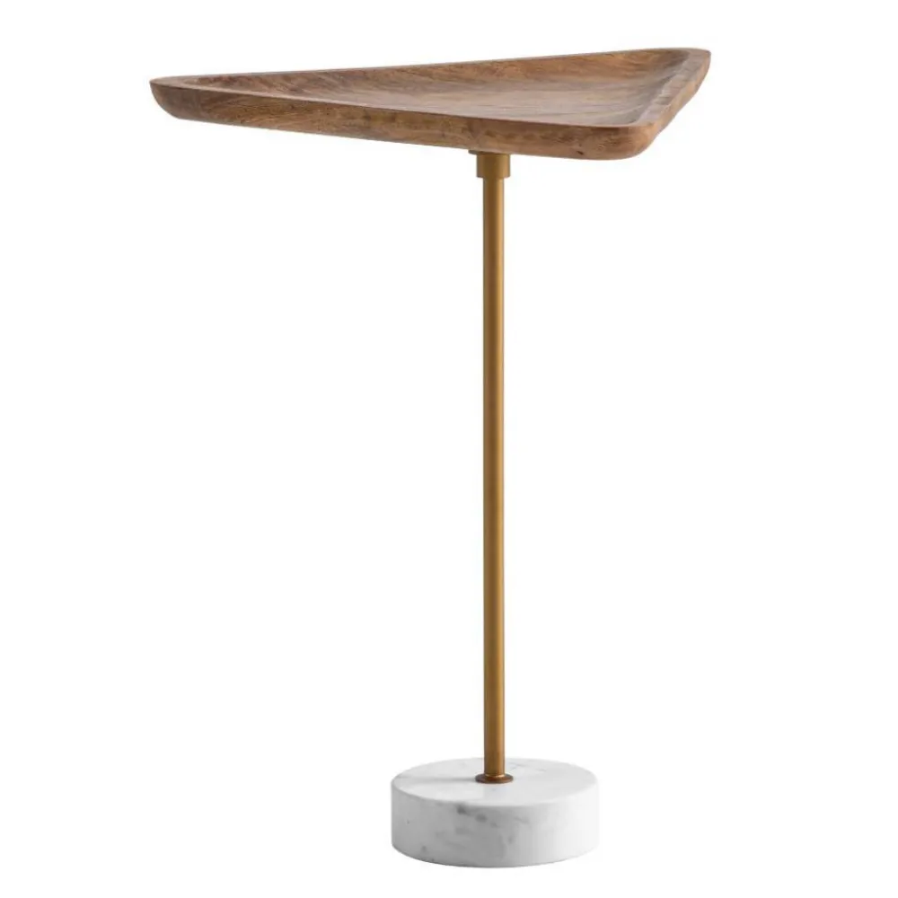 - Eleganter Beistelltisch in Holz Naturfarben, Gold und Weiß