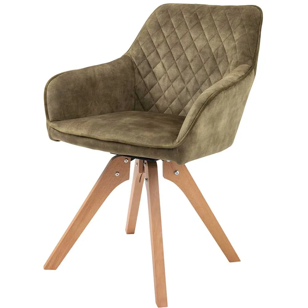 - Souveräner Polster-Drehstuhl in Oliv und Eichefarben