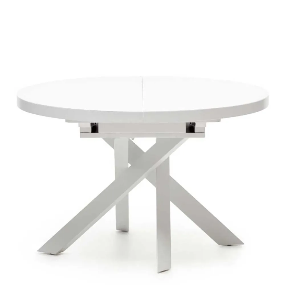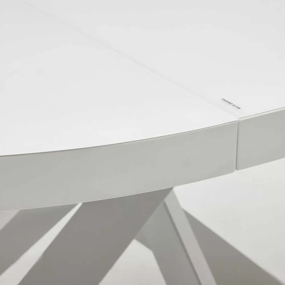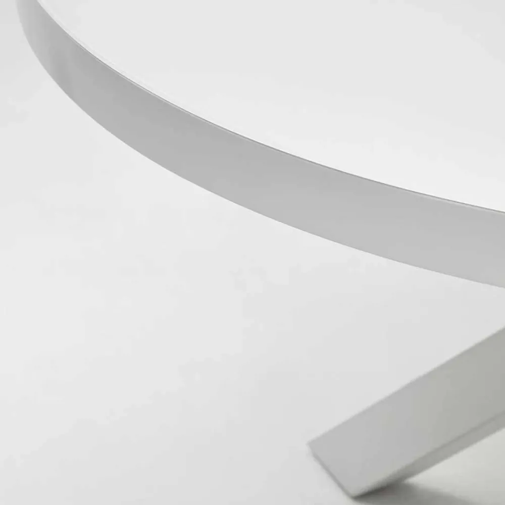 - Tischplatte aus gehärtetem Glas mit einer Basis aus lackierter MDF