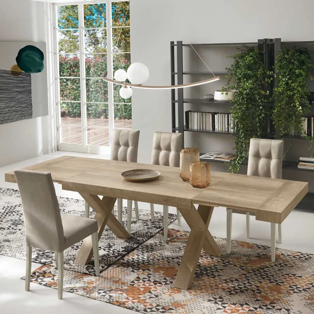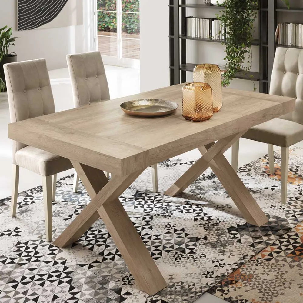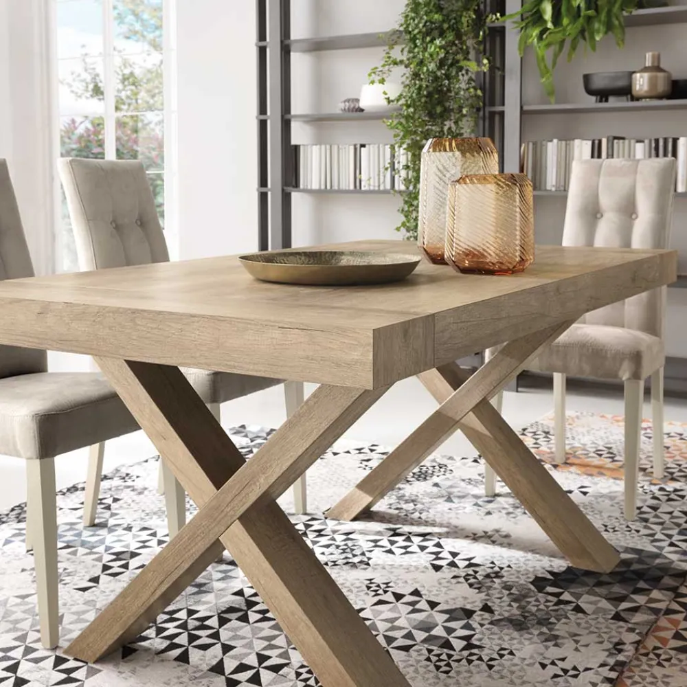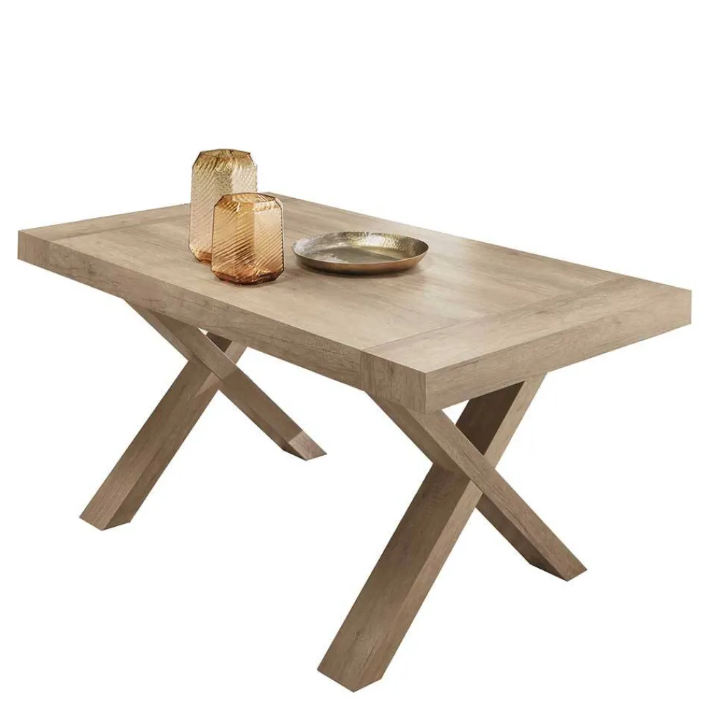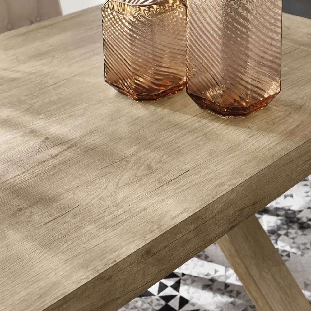 - Das X-Gestell aus Metall ist ebenfalls in Holzoptik beschichtet