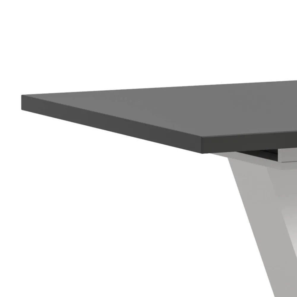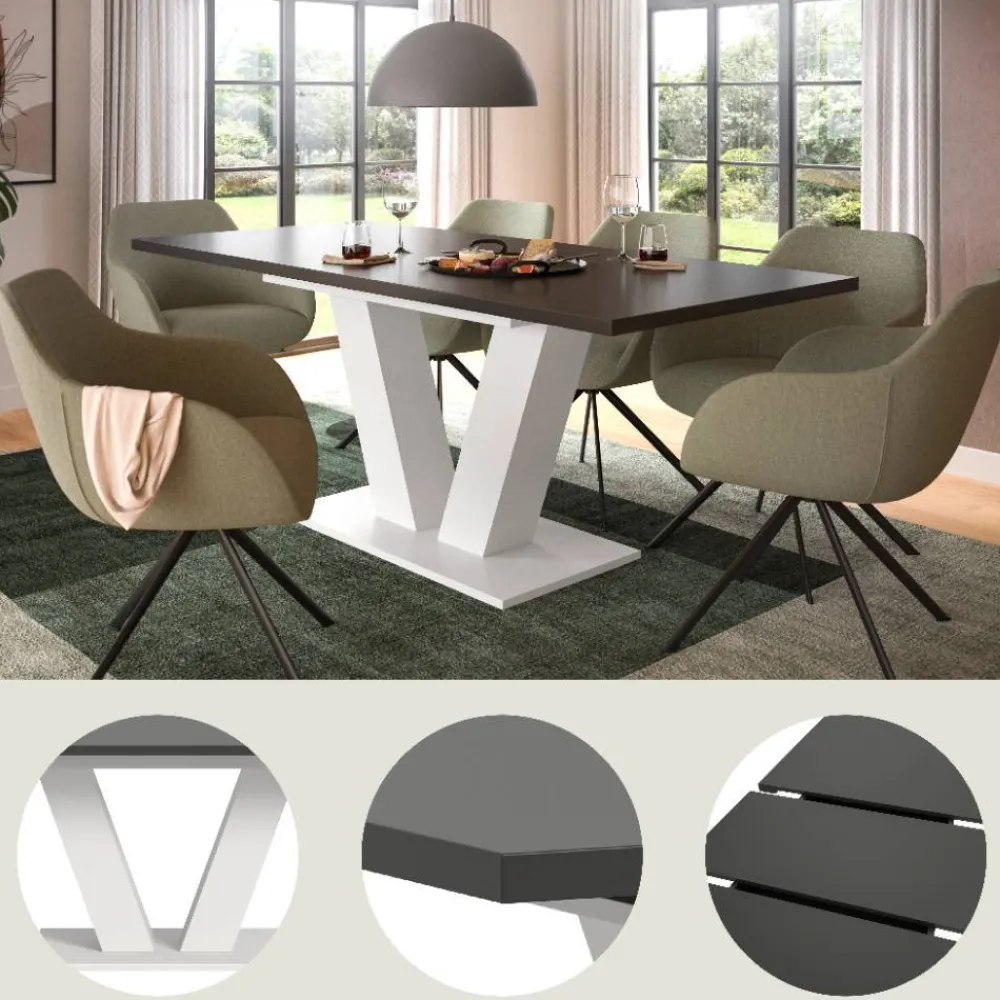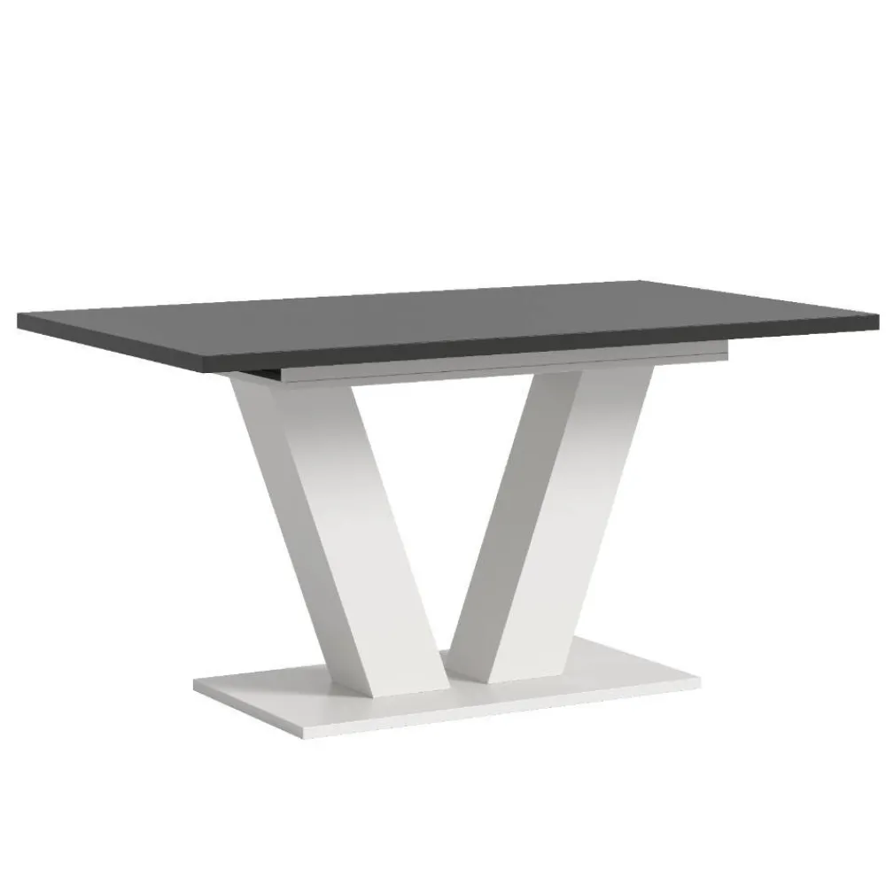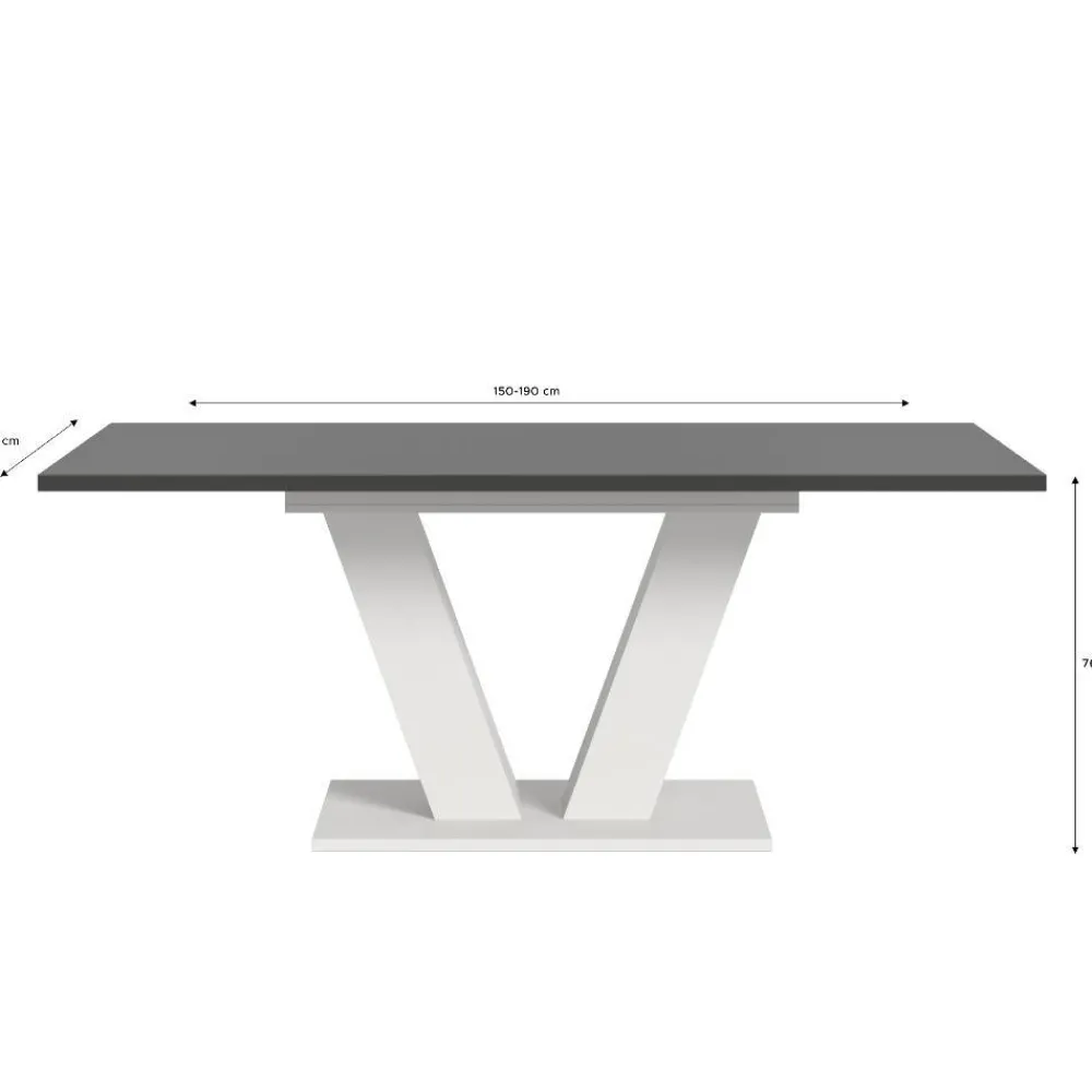 - Weißes Gestell in V-Form mit breiter Bodenplatte