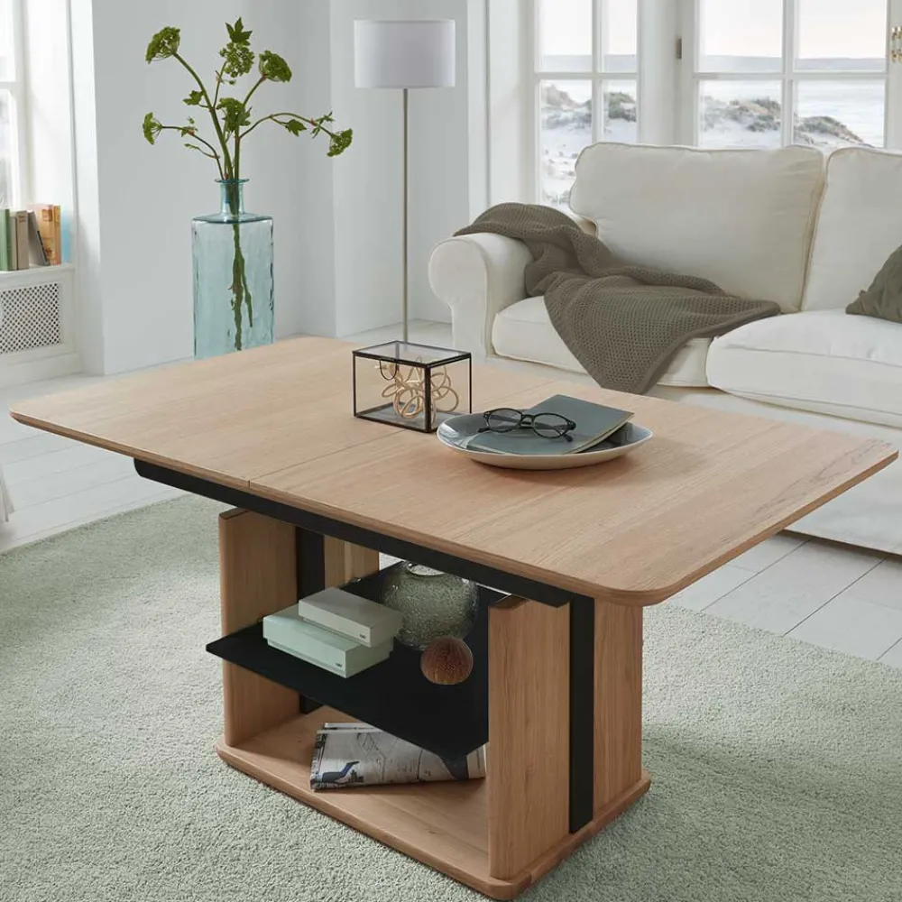 - Exklusiver Couchtisch in Wildeichefarben und Schwarz