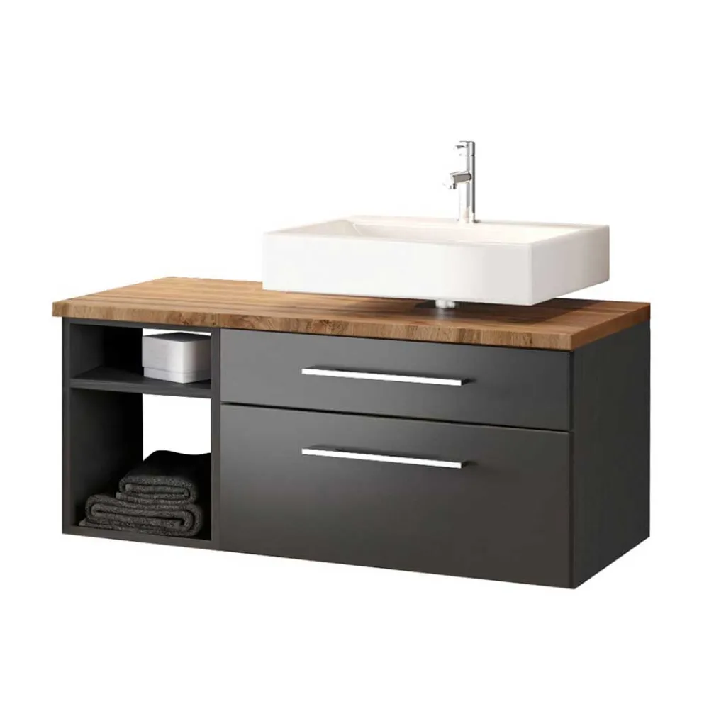 - Hochwertiges Badmöbel Set in dunkel Grau und Wildeichefarben