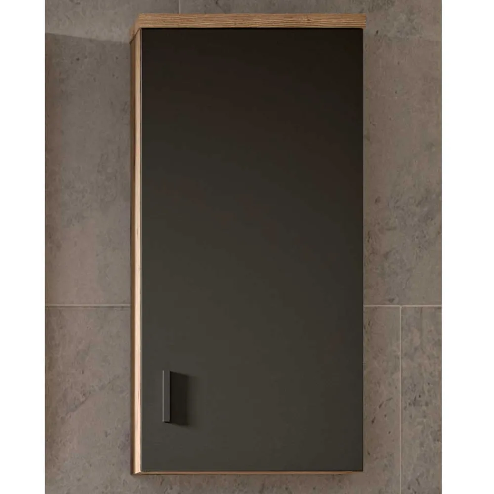 - Kompakter Bad Hängeschrank in Dunkelgrau und Wildeichefarben