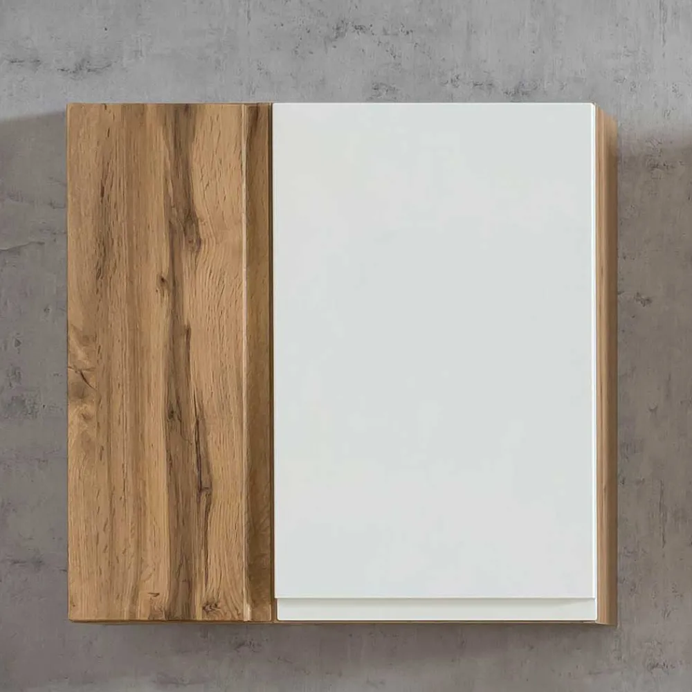 - Raffinierter Bad Hängeschrank in Weiß matt und Wildeichefarben