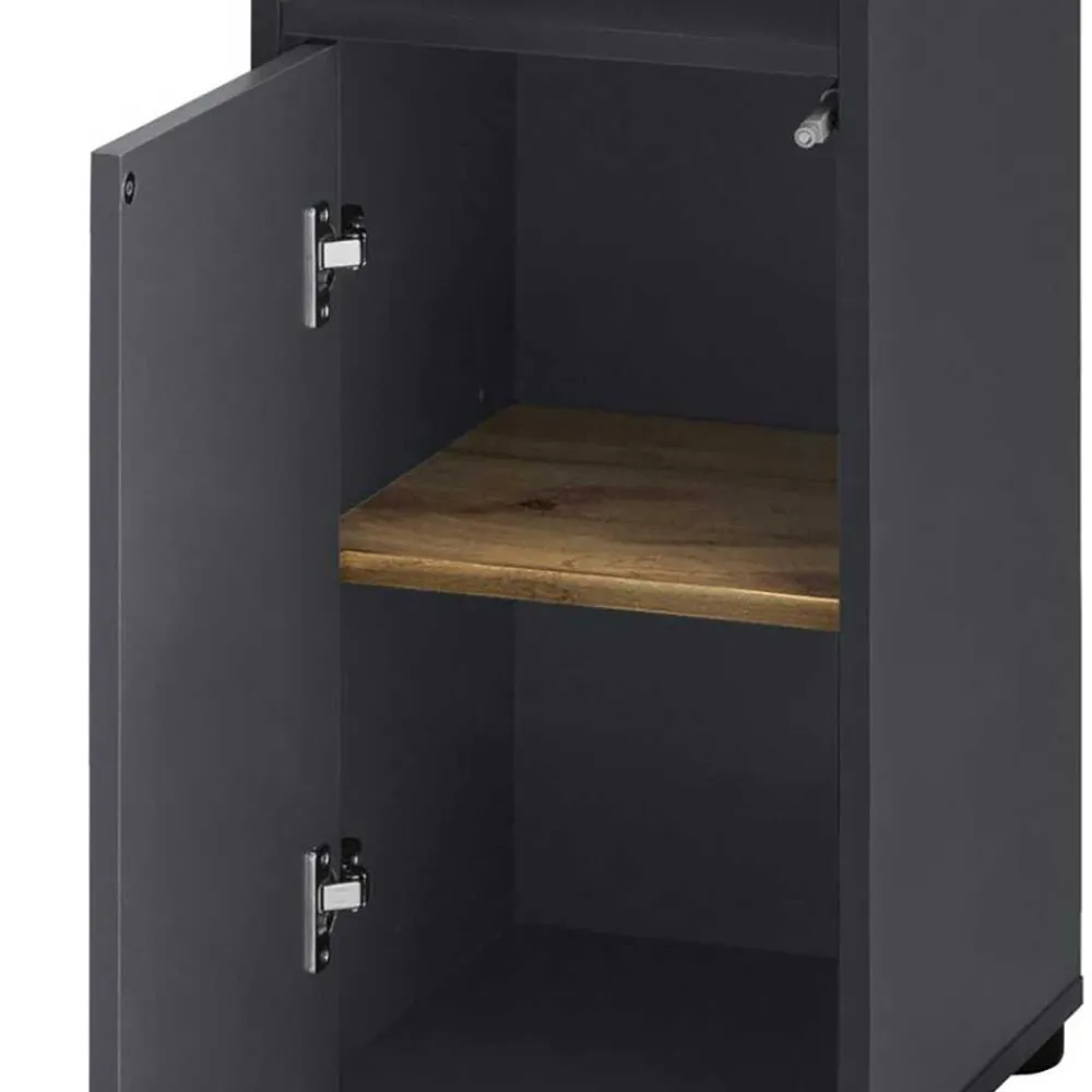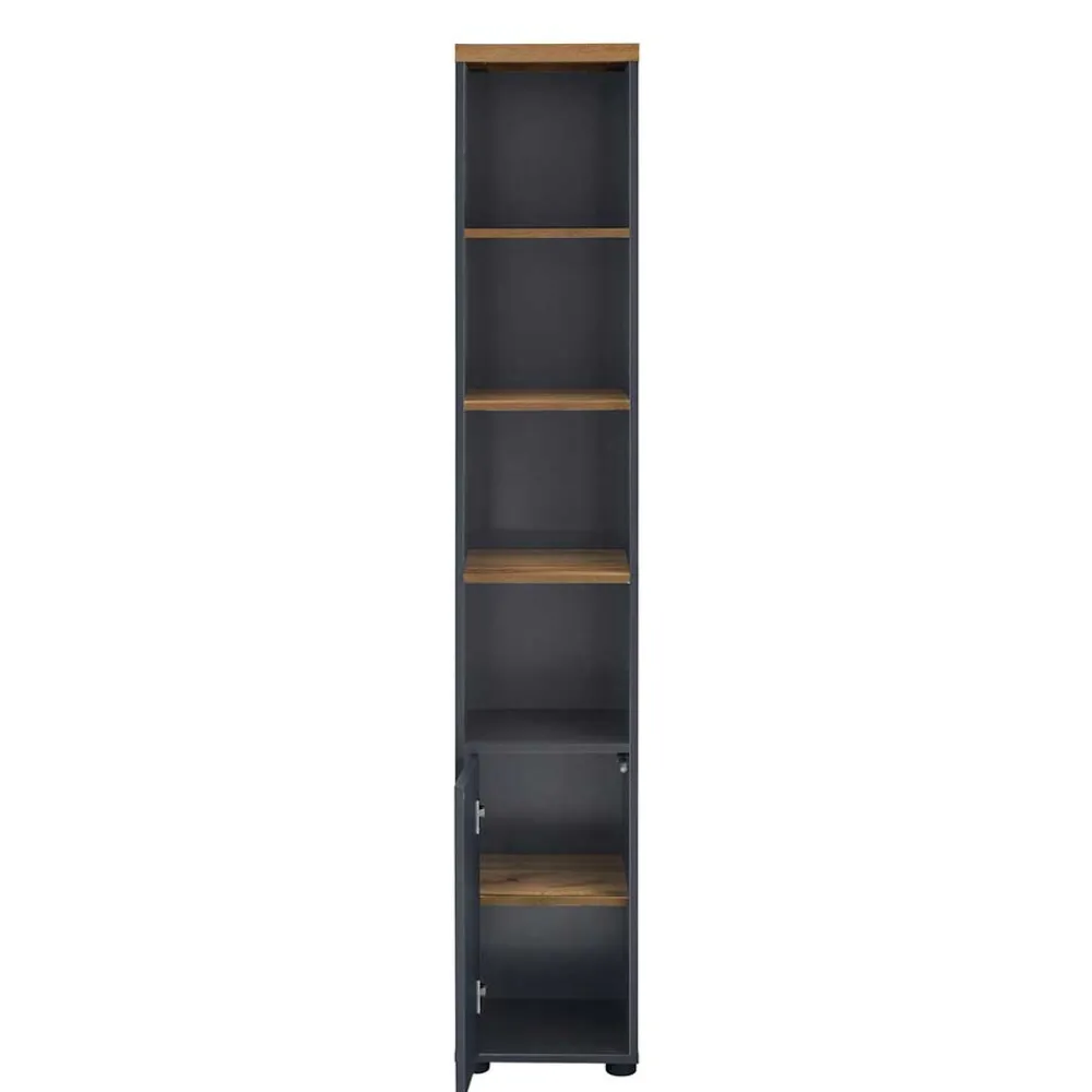 - Praktischer Bad Hochschrank in Anthrazit und Wildeichefarben