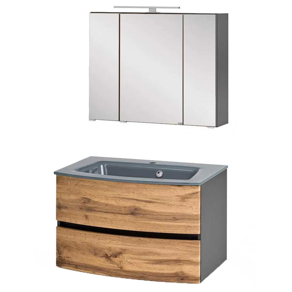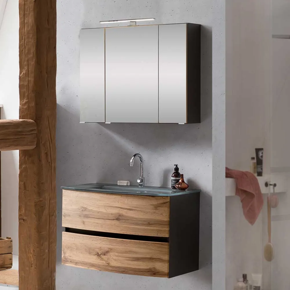 - Perfekte Badmöbel Kombination in Wildeichefarben und Dunkelgrau