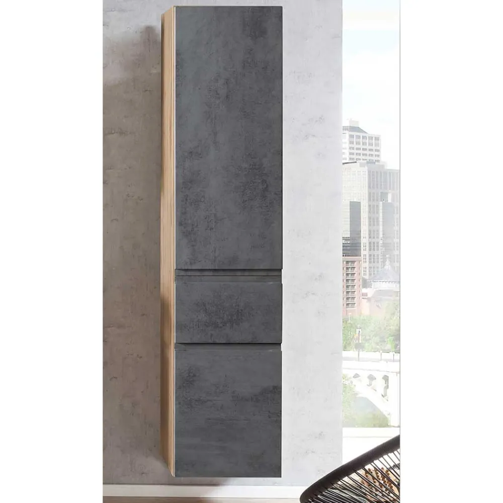 - Trendstarker Bad Hochschrank in Betongrau und Wildeichefarben