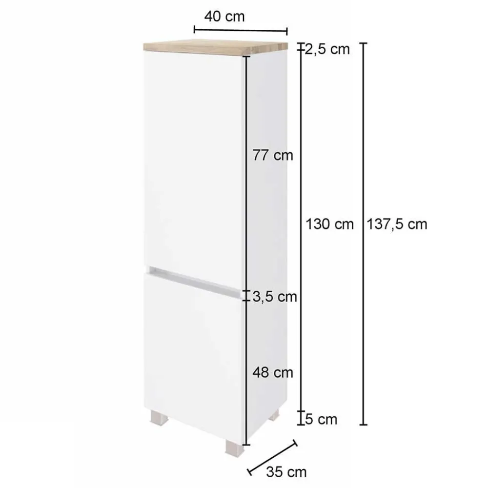 - Korpus melaminbeschichtet, Front in matt Weiß foliert, Deckplatte in Holzoptik Wildeiche