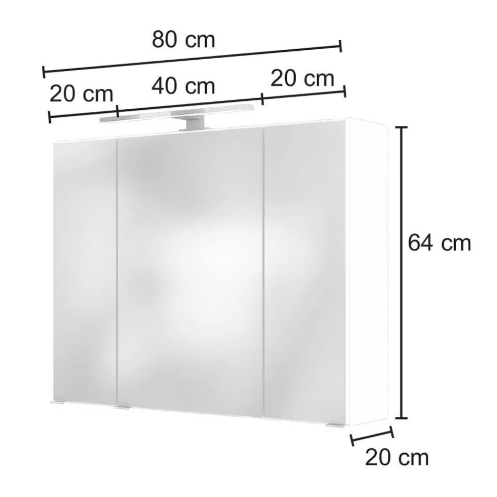 - Maße ohne Aufbauleuchte: BxHxT: 80x64x20 cm