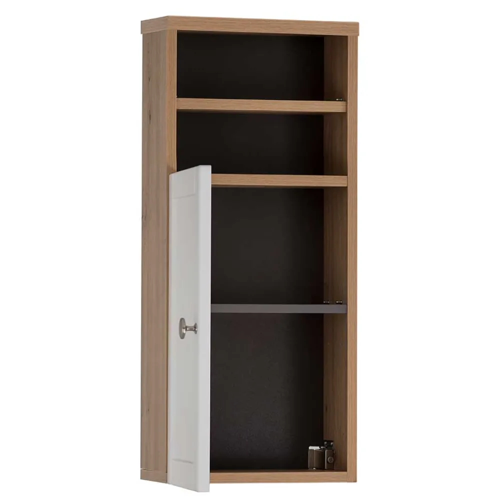 - Kompakter Bad Unterschrank in Weiß und Wildeichefarben