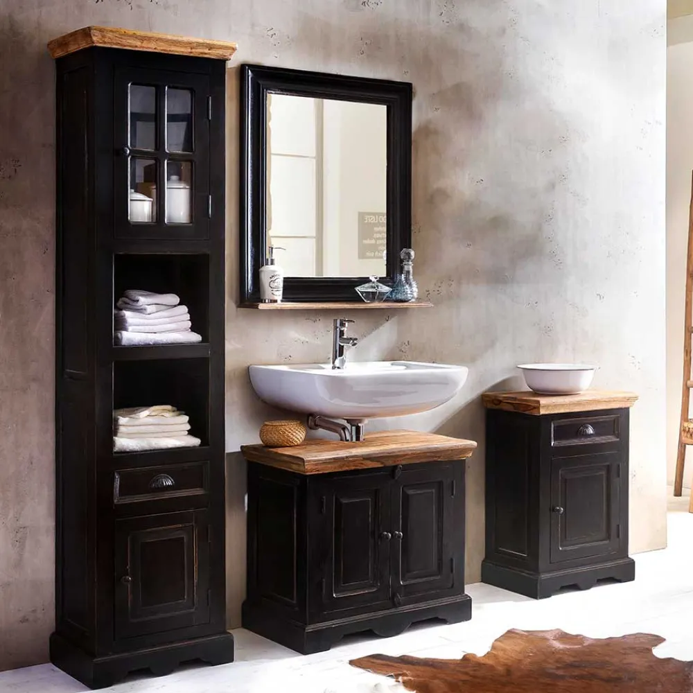 - Koloniales Badezimmer Set in Schwarz und Honigfarben