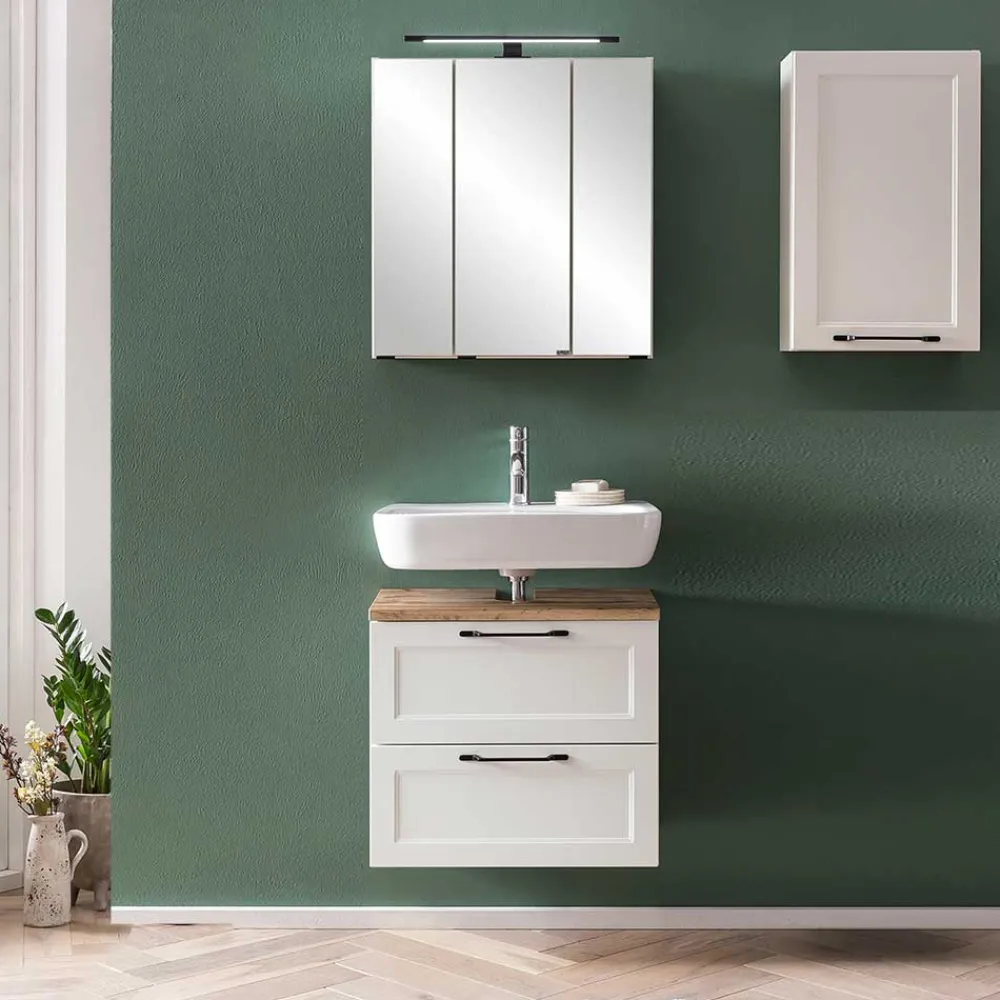 - Zweckmäßige Badmöbel in Weiß und Wildeichefarben
