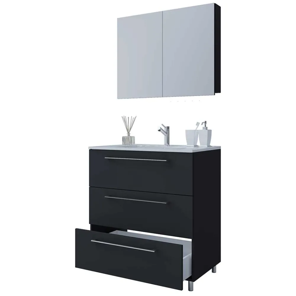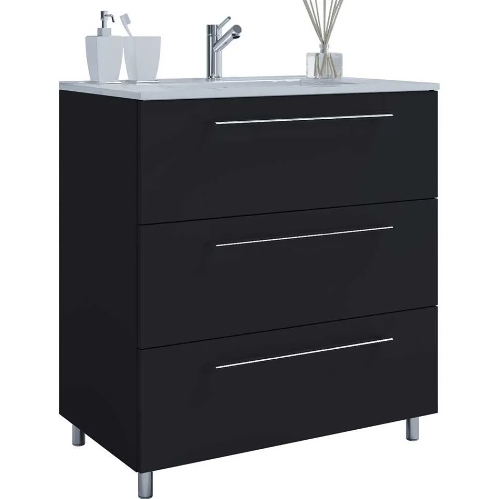 - Ansprechende Badmöbel in Schwarz und Weiß