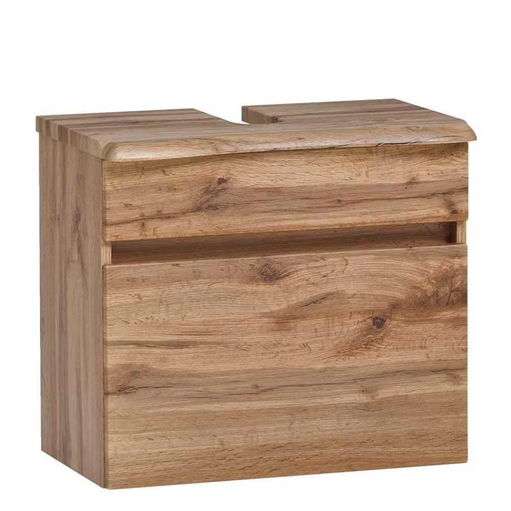 - Oberflächen in Holzoptik Wildeiche, Front tiefgezogen foliert, Seiten und Deckplatte melaminbeschichtet, fühlbare Struktur
