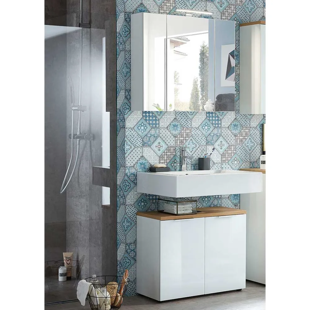 - Zeitloses Badmöbel Set in Weiß und Eichefarben