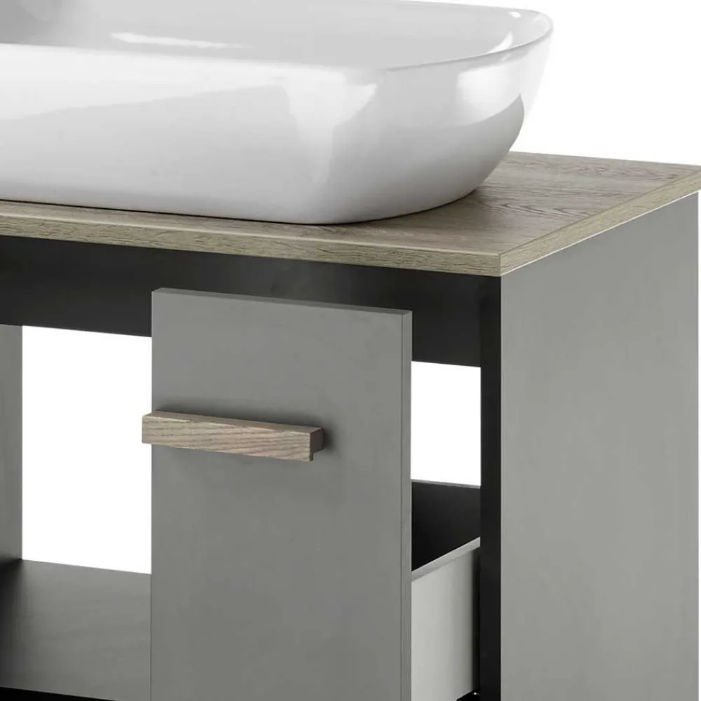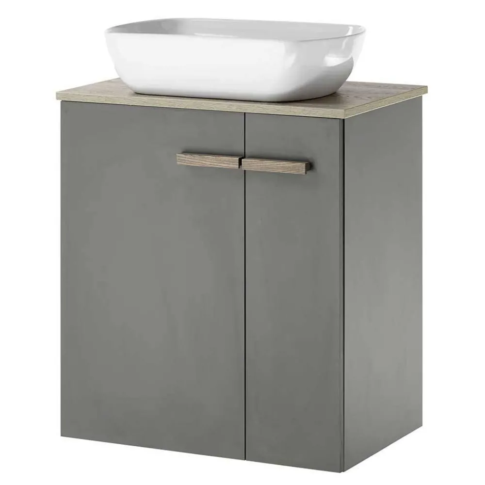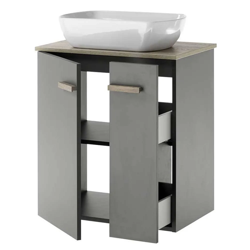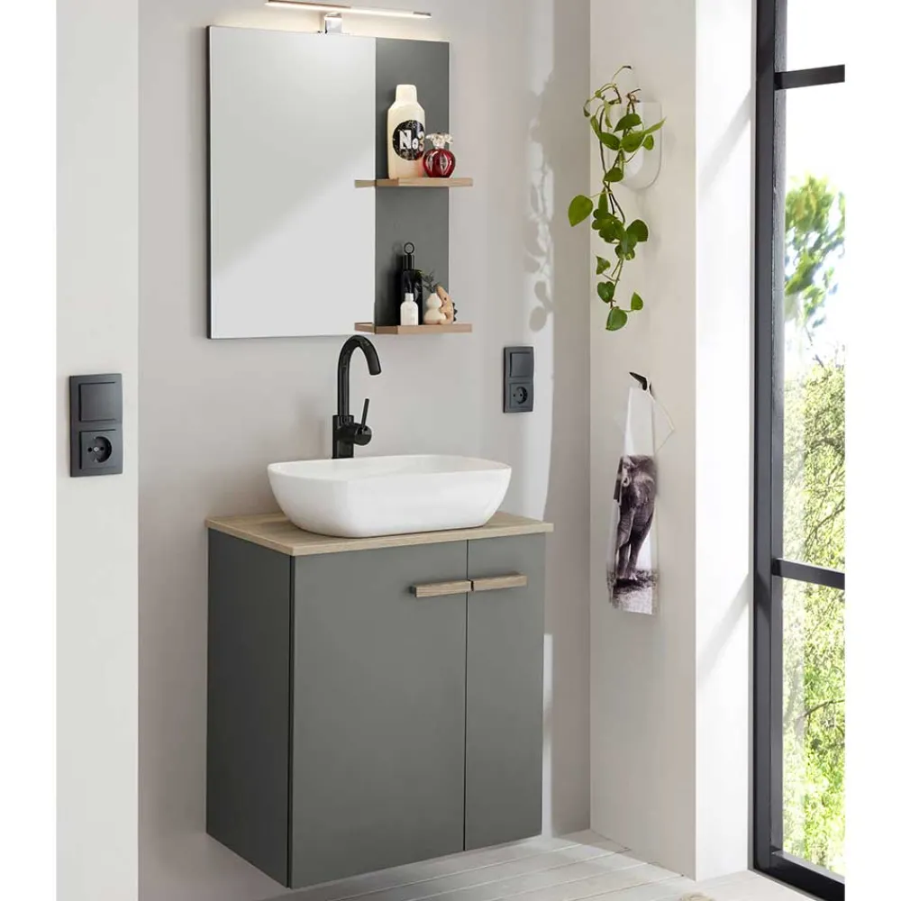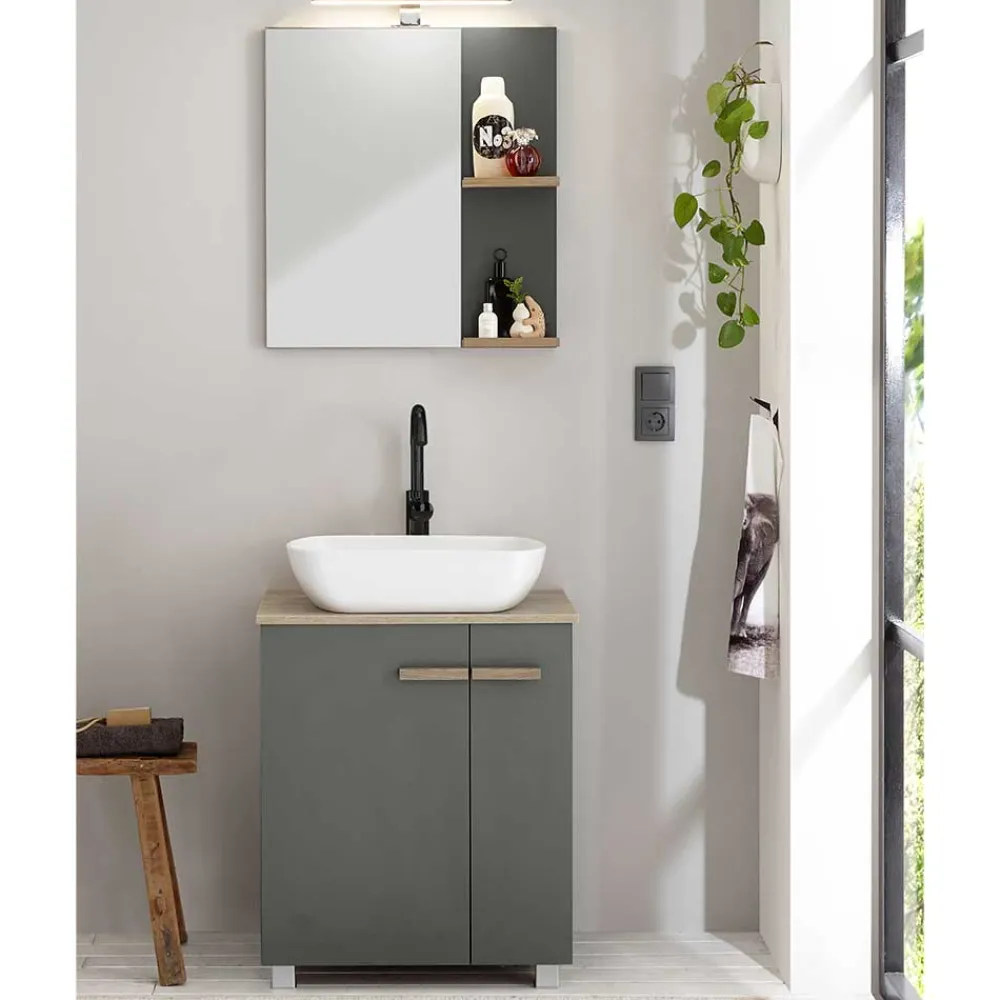 - Aktuelle Badmöbel Kombination in Anthrazit und Eichefarben