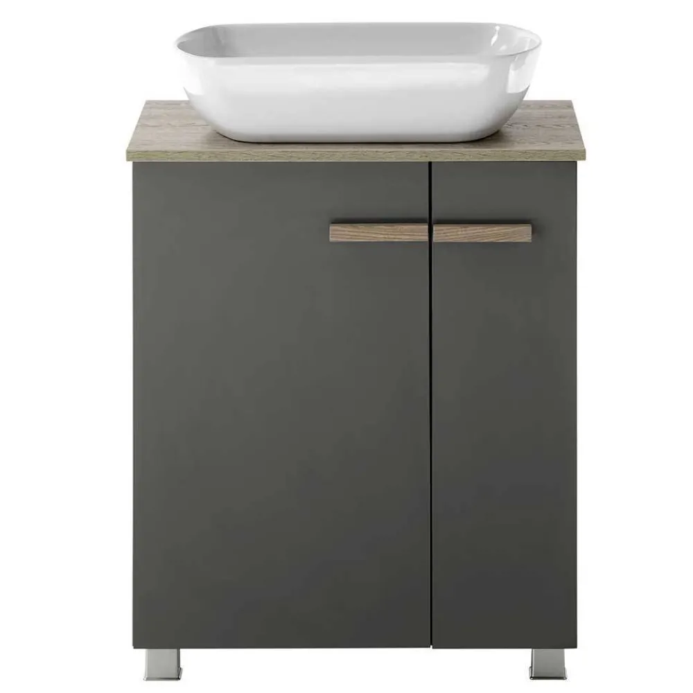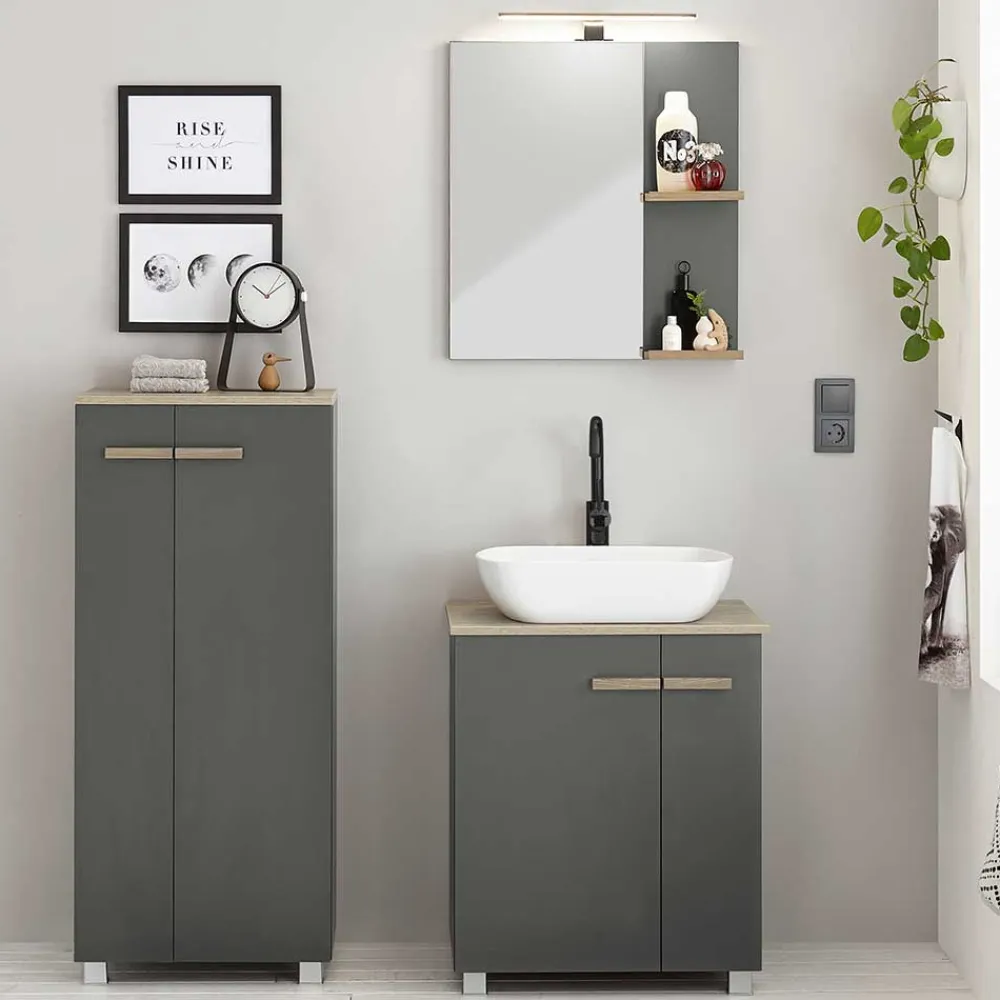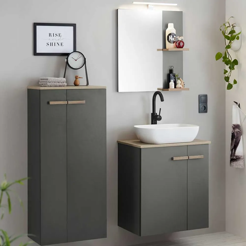 - Ausgezeichnete Badmöbel in Anthrazit und Eichefarben