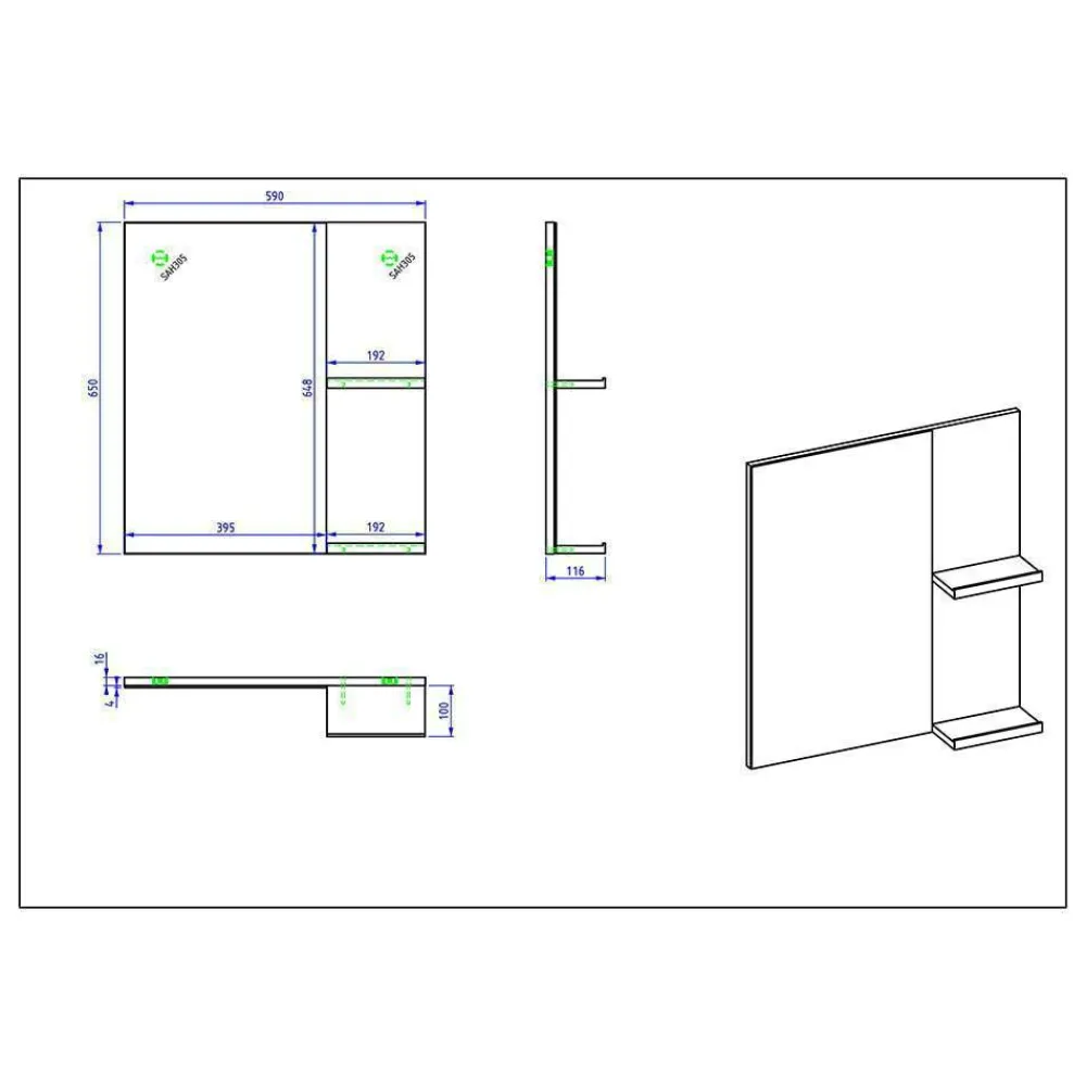 - Hergestellt aus Spiegelglas, MDF (Front) und Spanplatte (Korpus)