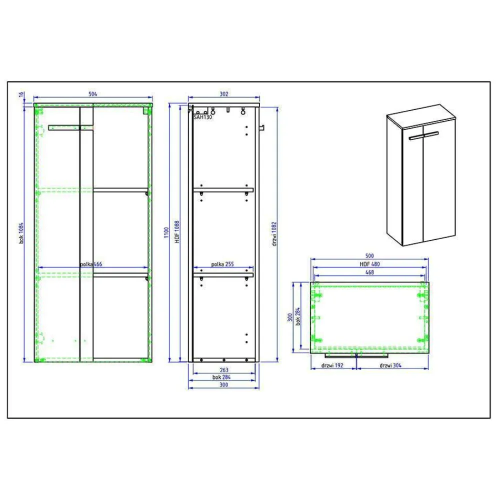 - Spiegel zur Wandmontage, Schränke wahlweise hängend oder stehend, Kunststoff-Füße (5 cm hoch) im Lieferumfang enthalten