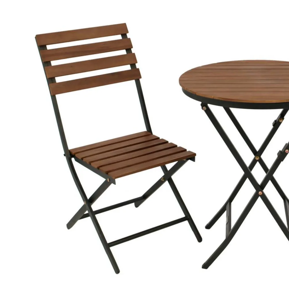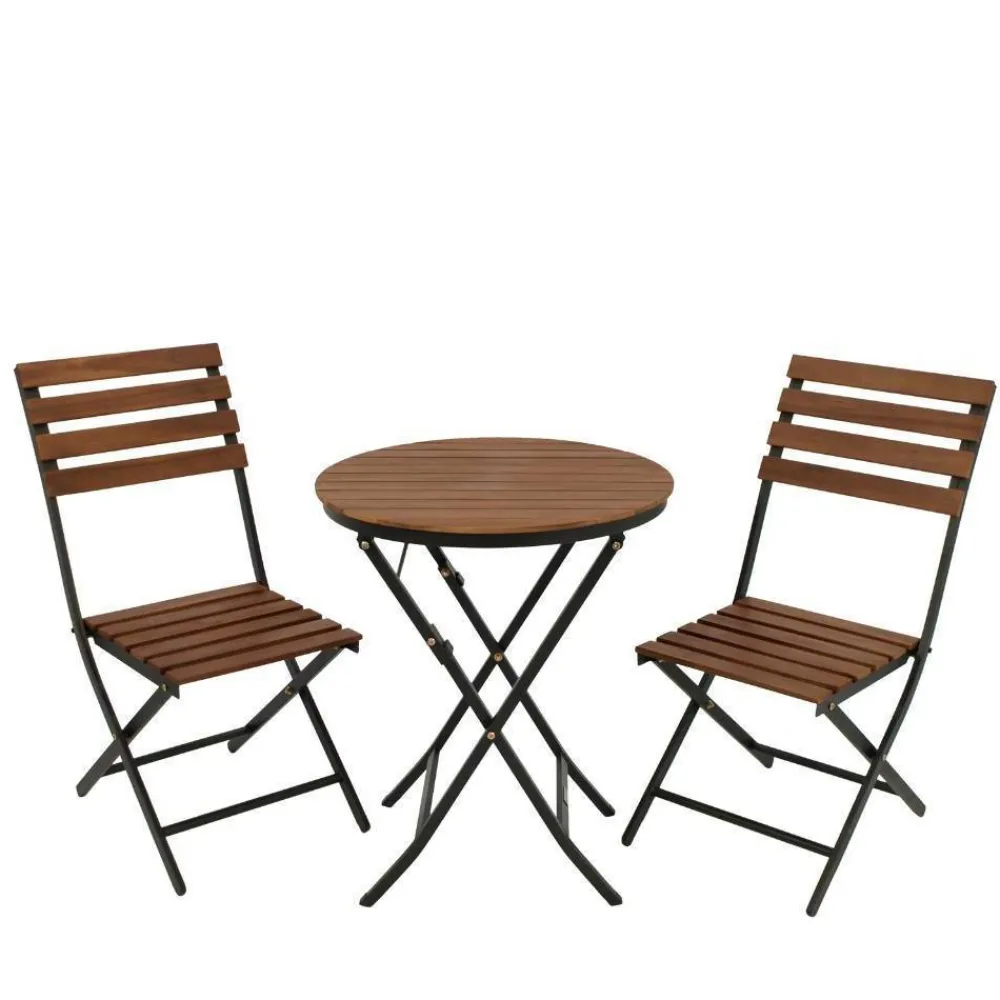 - Kompakte Biergarten Möbel in Akaziefarben und Schwarz
