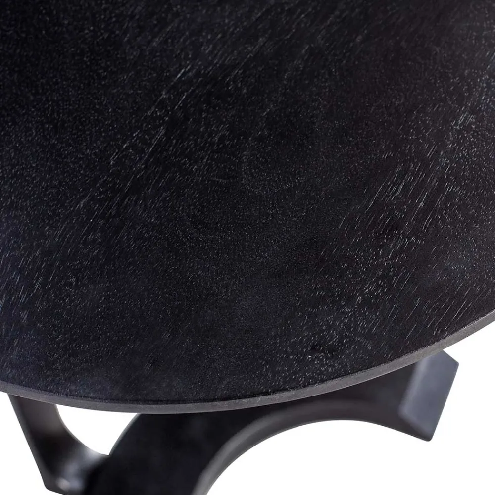- Mattschwarze Massivholzplatte mit durchscheinender Struktur