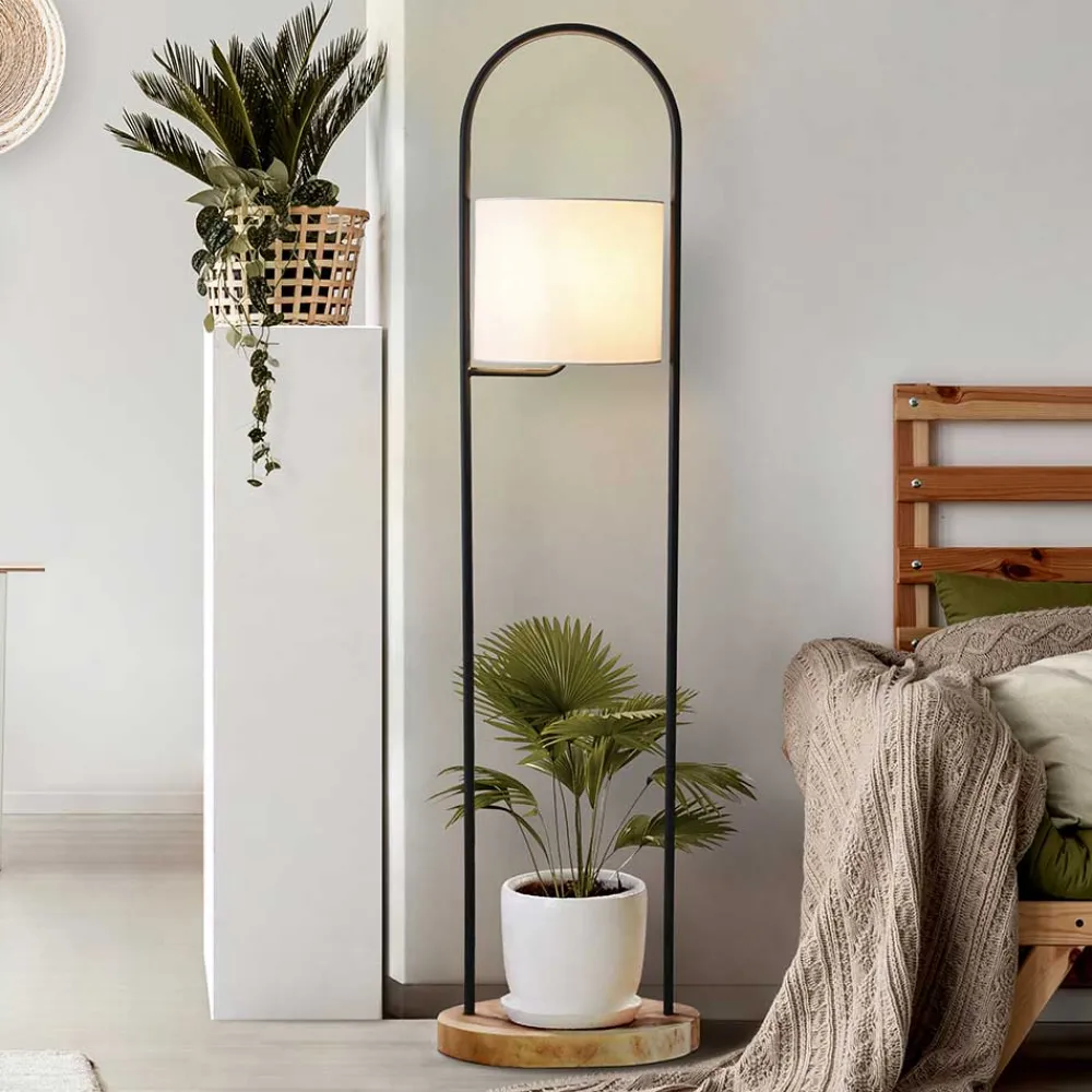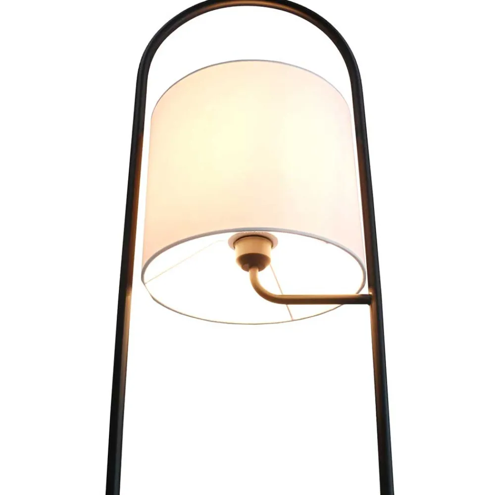 - Extravagante Stehleuchte in Cremeweiß, Schwarz und Akaziefarben