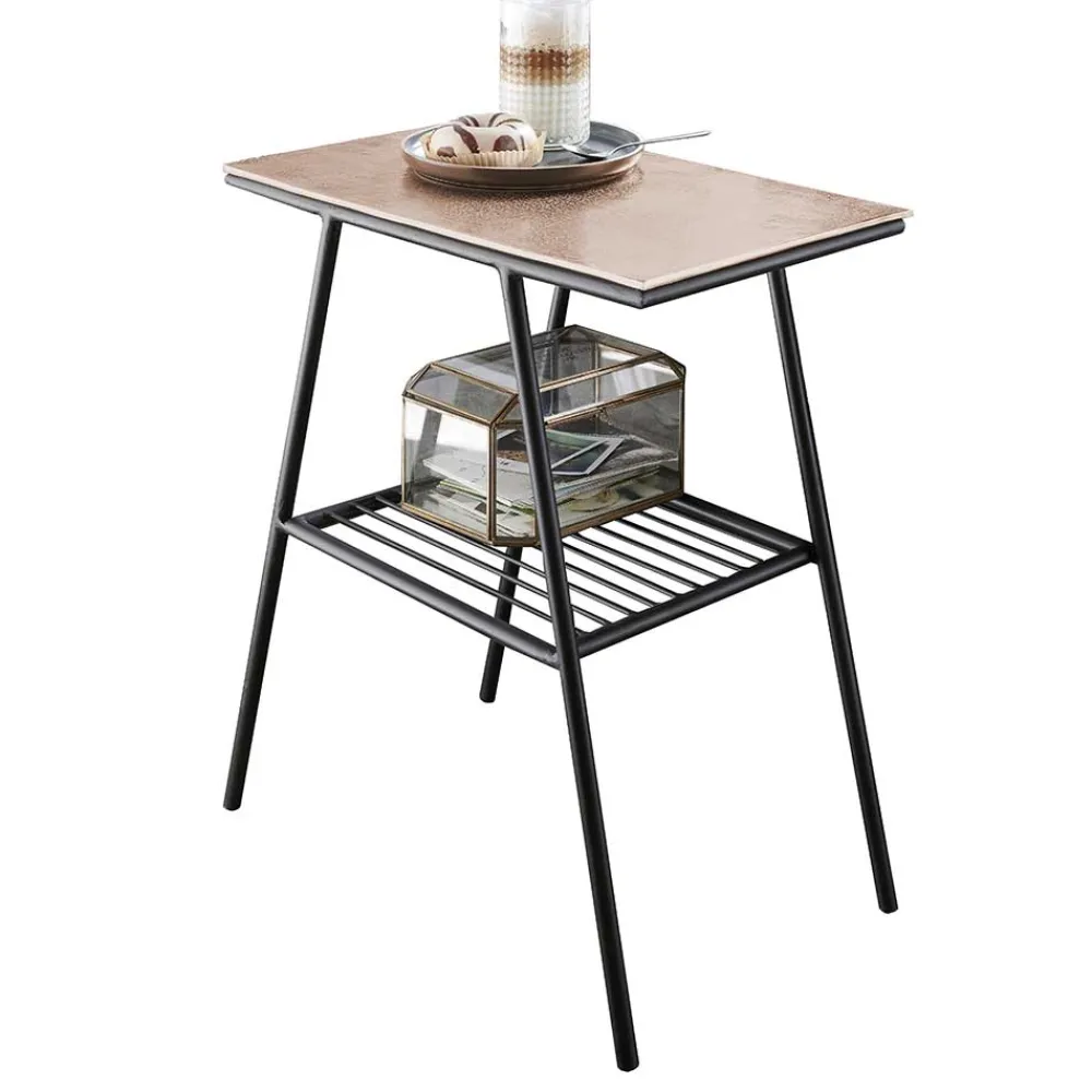- Attraktiver Beistelltisch in Altgoldfarben und matt Schwarz