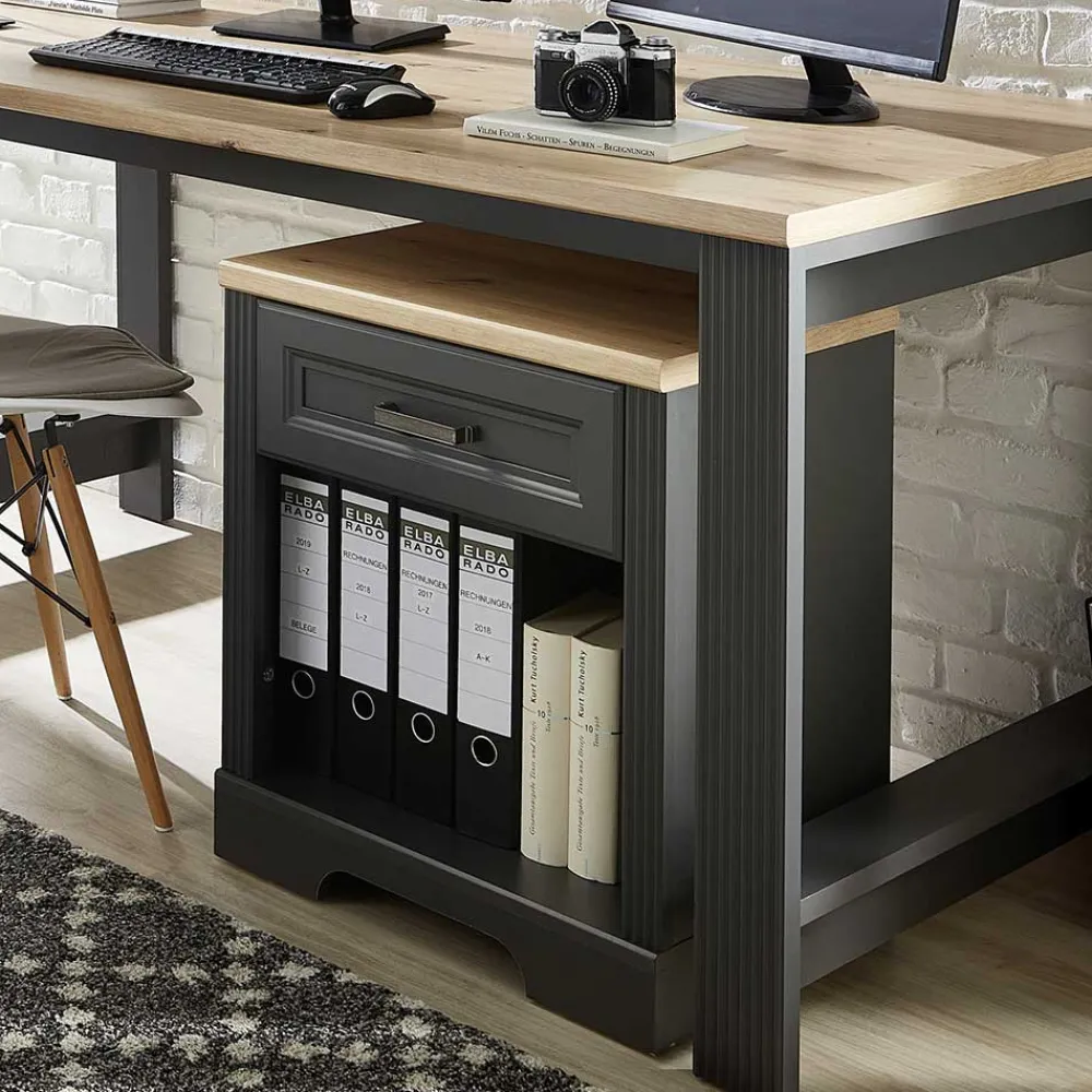 - Kompakter Rollcontainer in Dunkelgrau und Eichefarben