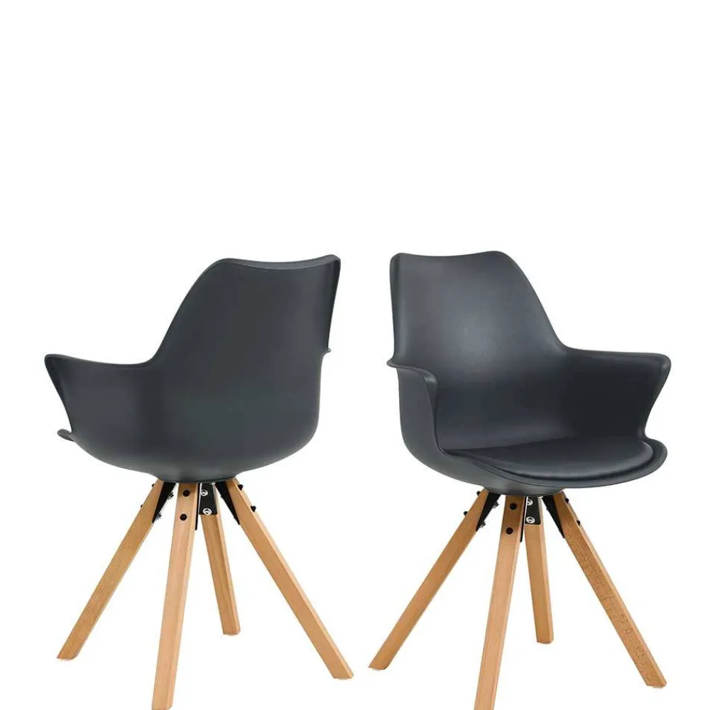 - Junge Stühle in Dunkelgrau und Eichefarben