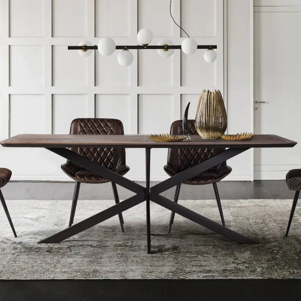 - Exklusiver Esstisch in Dunkelbraun und Schwarz