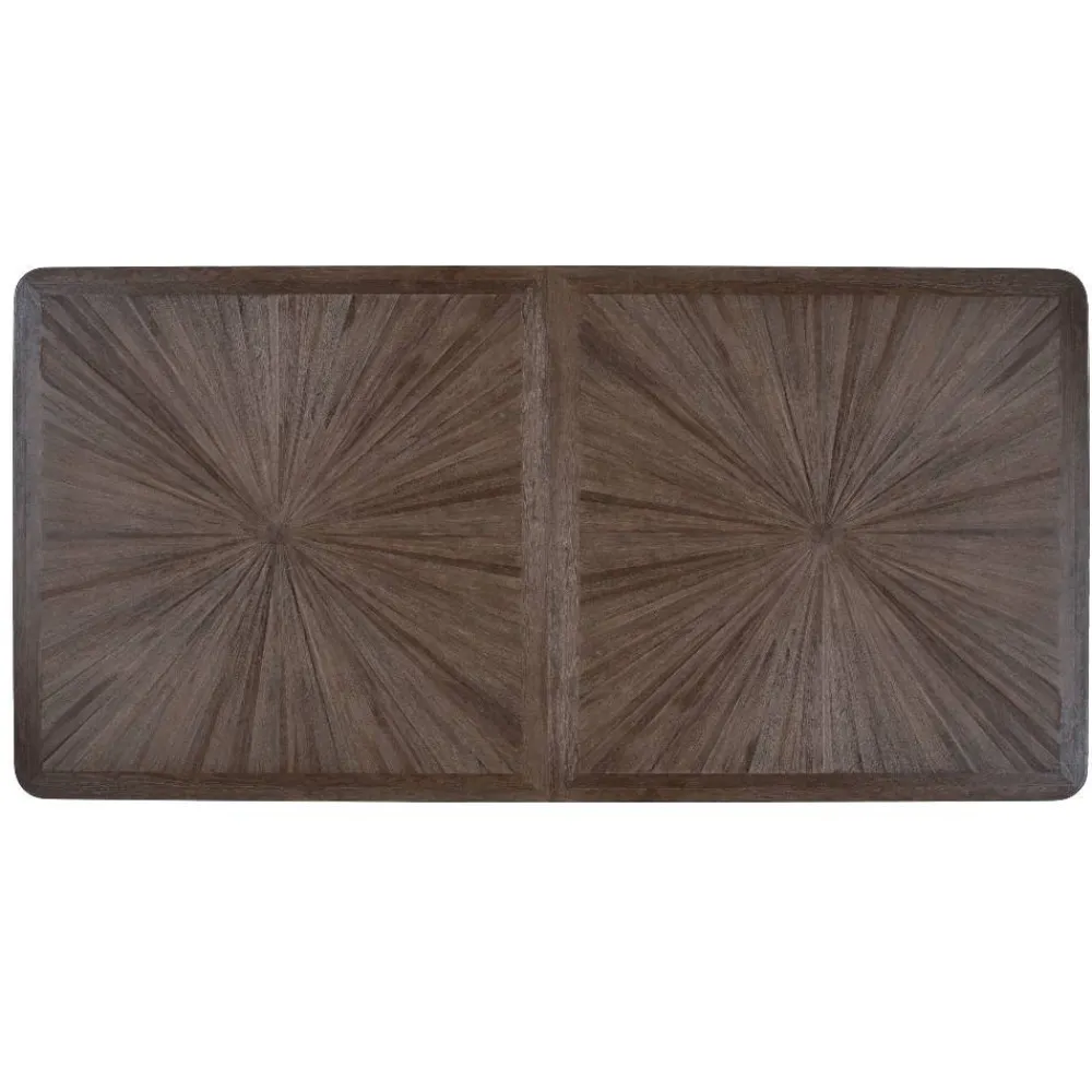 - Aufwändig gestaltete Tischplatte mit strahlenförmiger Struktur, kann uneben ausfallen