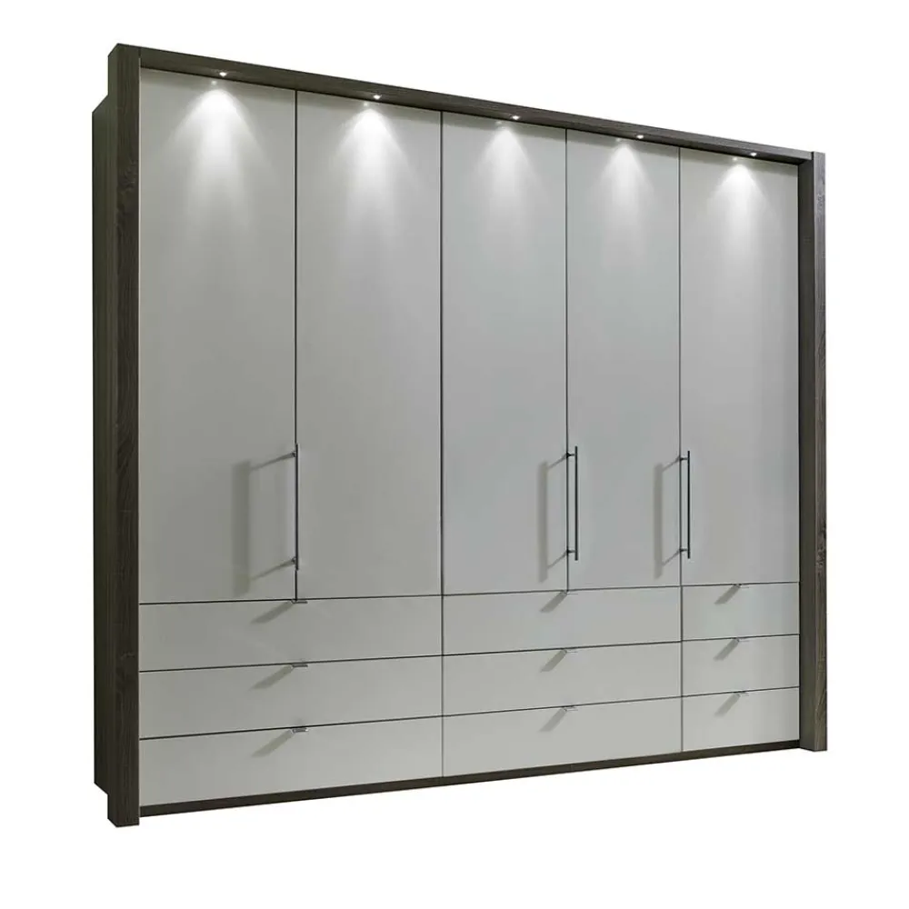 - Eleganter Kleiderschrank in Weiß und Eiche Trüffelfarben