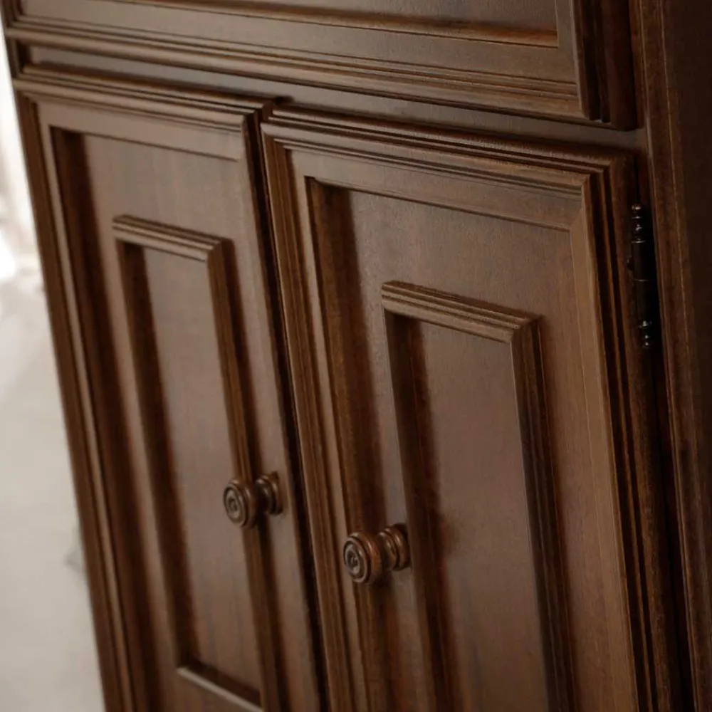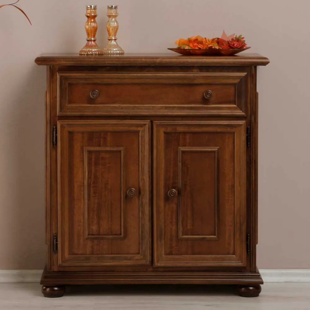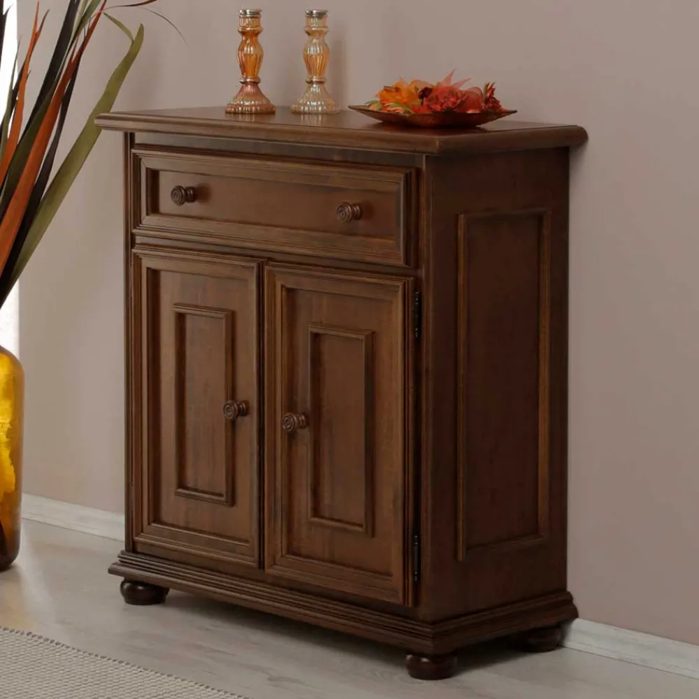 - Walnussbaumfarbig antik gebeizte und lackierte Oberflächen, von Hand poliert für einen unikaten Effekt