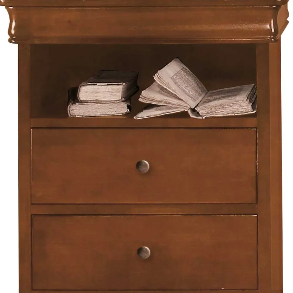 - Aus Tulpenbaum Massivholz (Rahmen und Gestell), Pappelholz (Schubladen) und MDF (Seiten, Deckplatte) gefertigt
