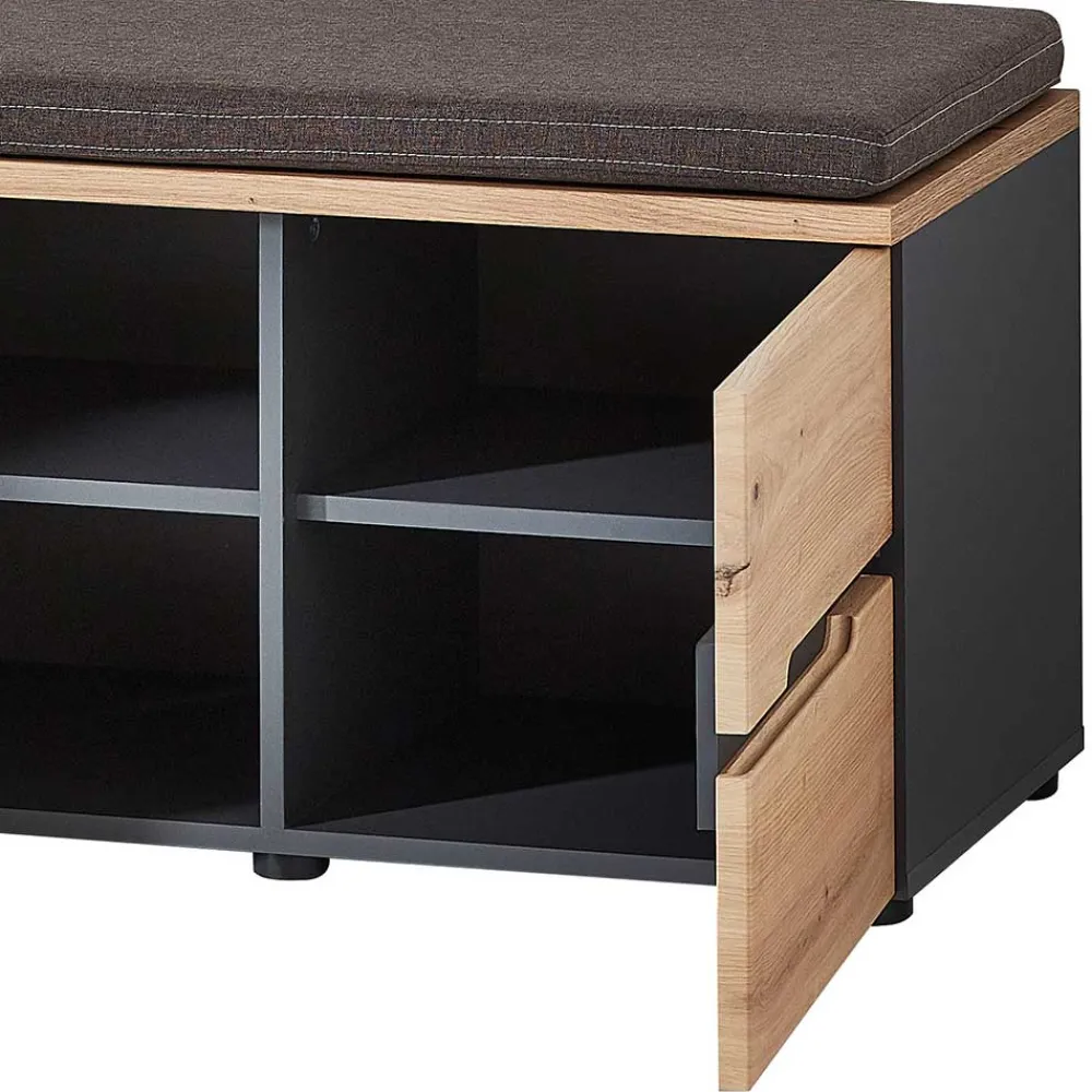- Praktische Schuhbank in Wildeichefarben, Graubraun und Dunkelgrau