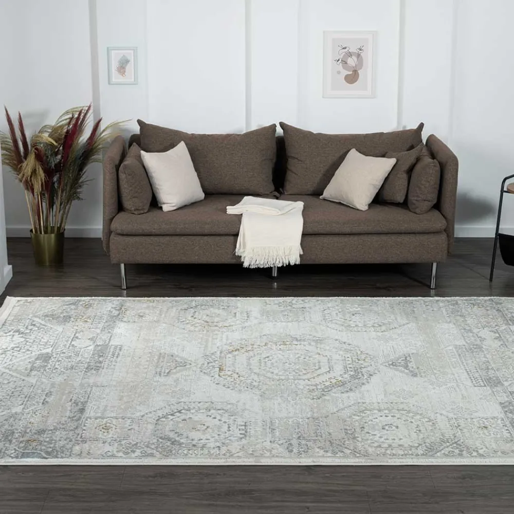 - Eleganter Teppich in Hellgrau und Cremefarben