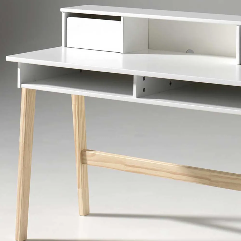 - Schicker Schreibtisch in Weiß und Kieferfarben