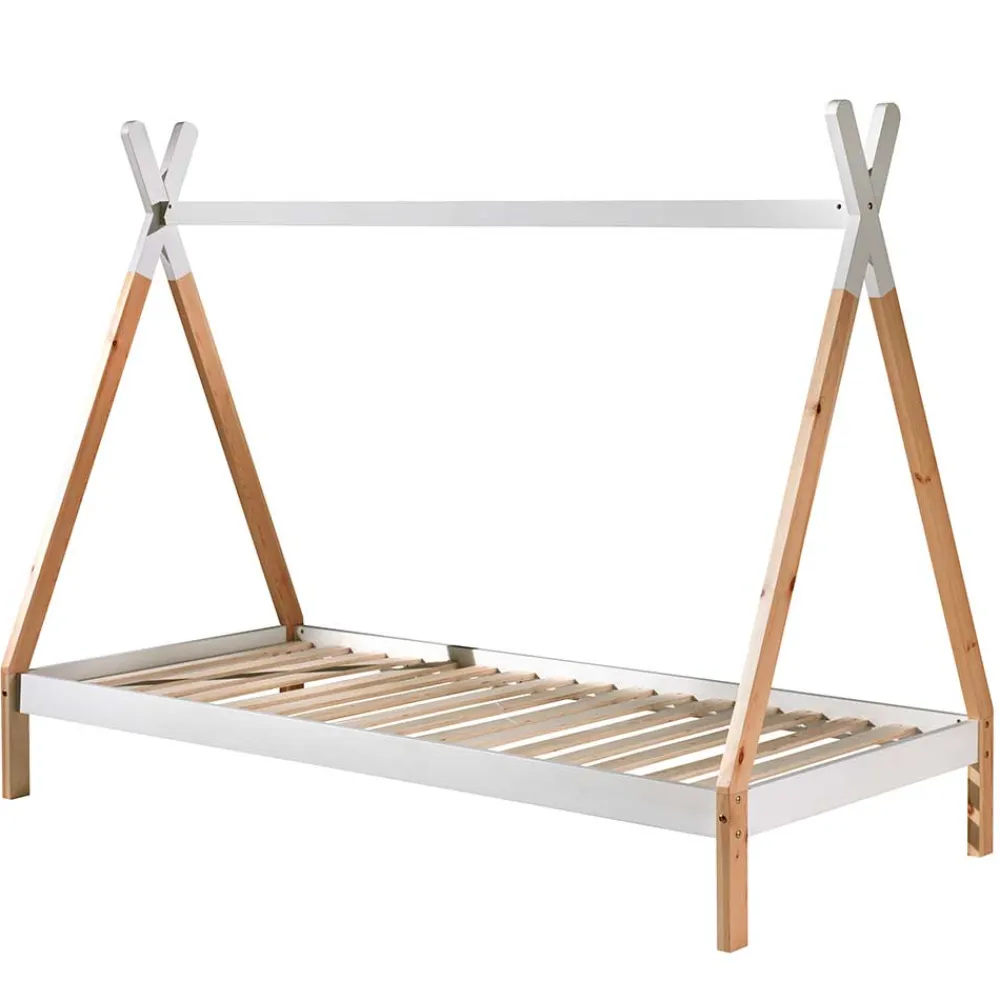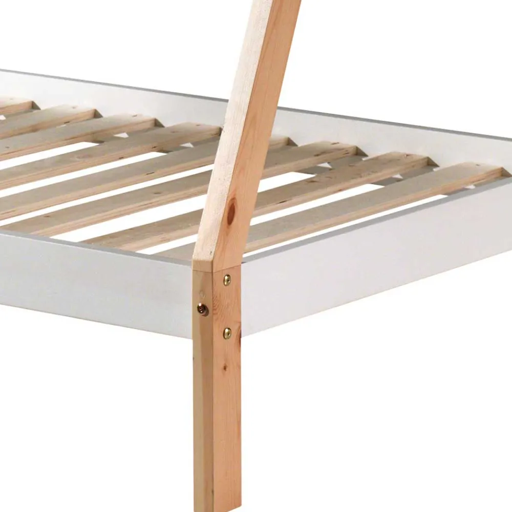 - Spielerisches Tipi Bett in Weiß und Kieferfarben