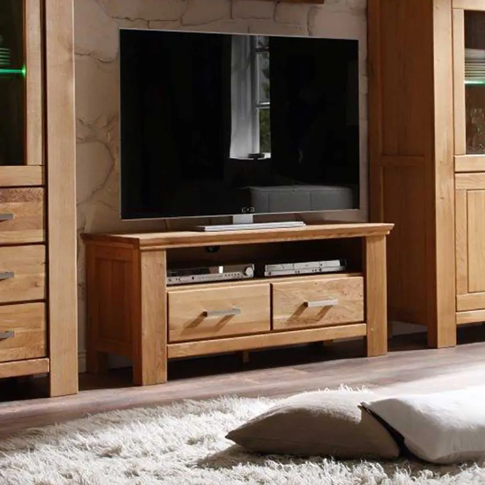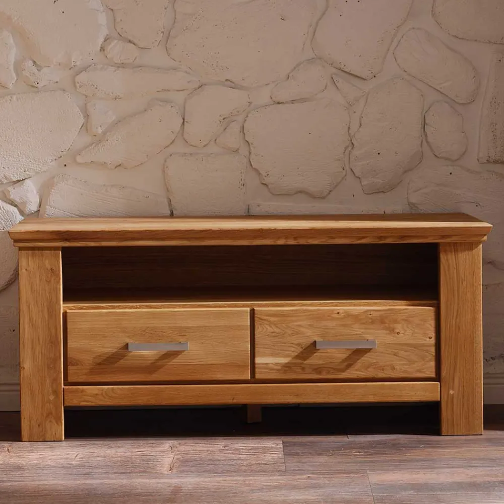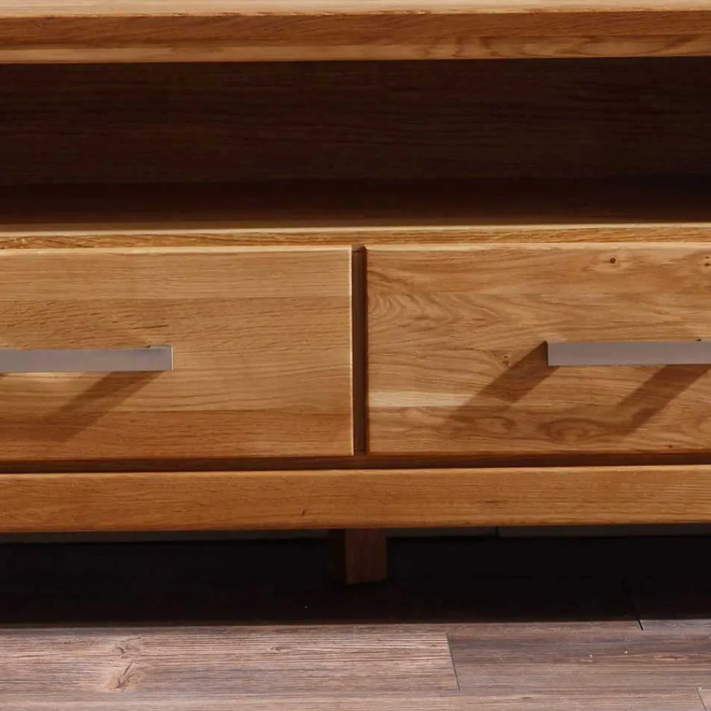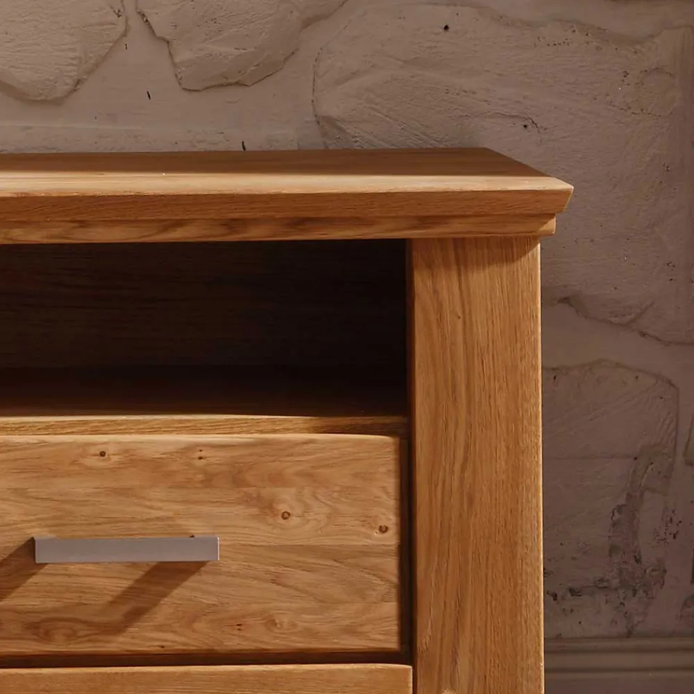 - Oberplatte, Schubkästen und Rahmen der Seiten aus Wildeiche Massivholz, restliche Bestandteile aus solider Spanplatte hergestellt