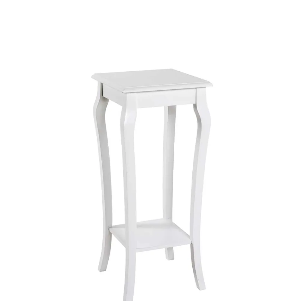 - Robustes Vierfußgestell aus massivem Tannenholz, geschwungene Tischbeine