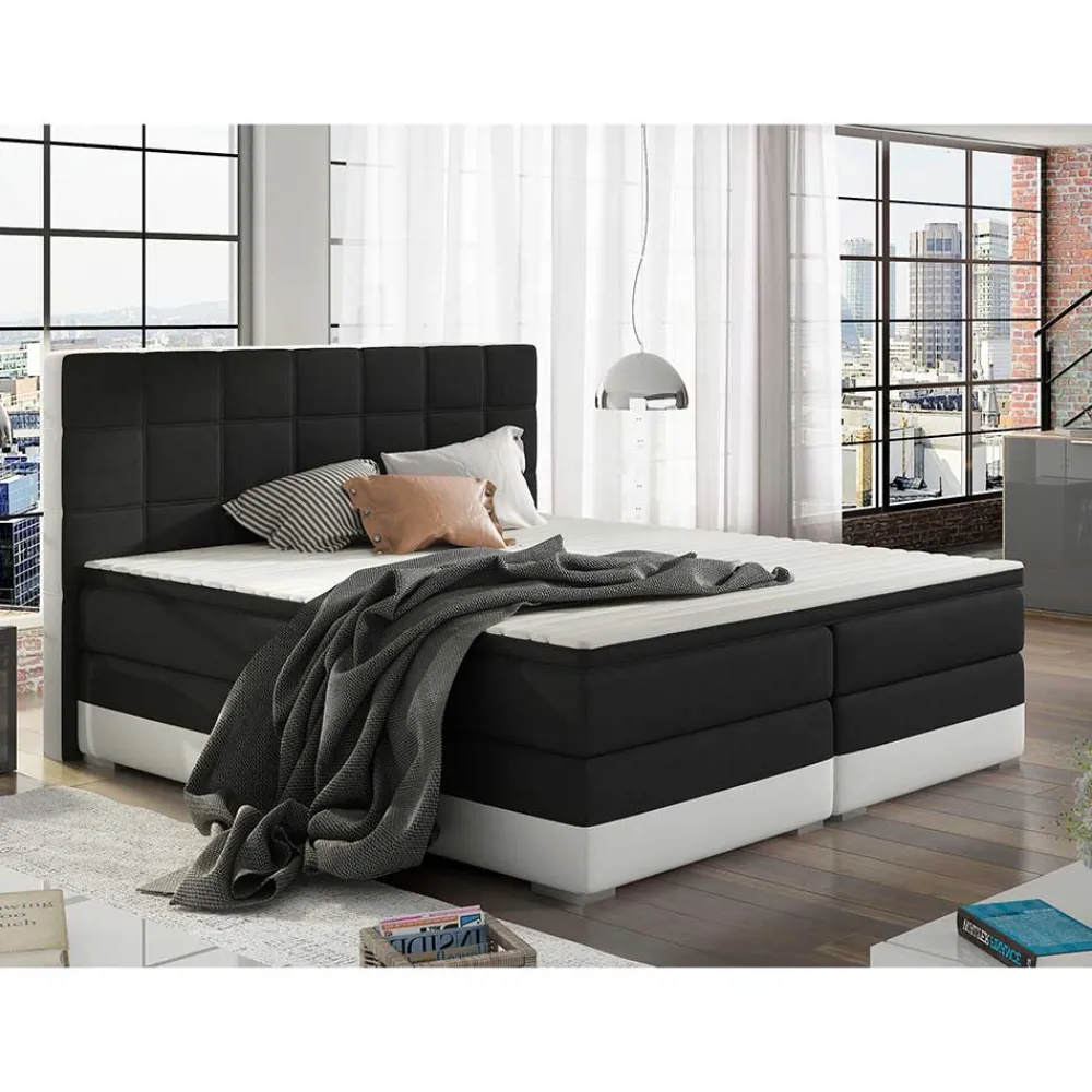 - Kontraststarkes Boxbett in Schwarzbrauin und Weiß