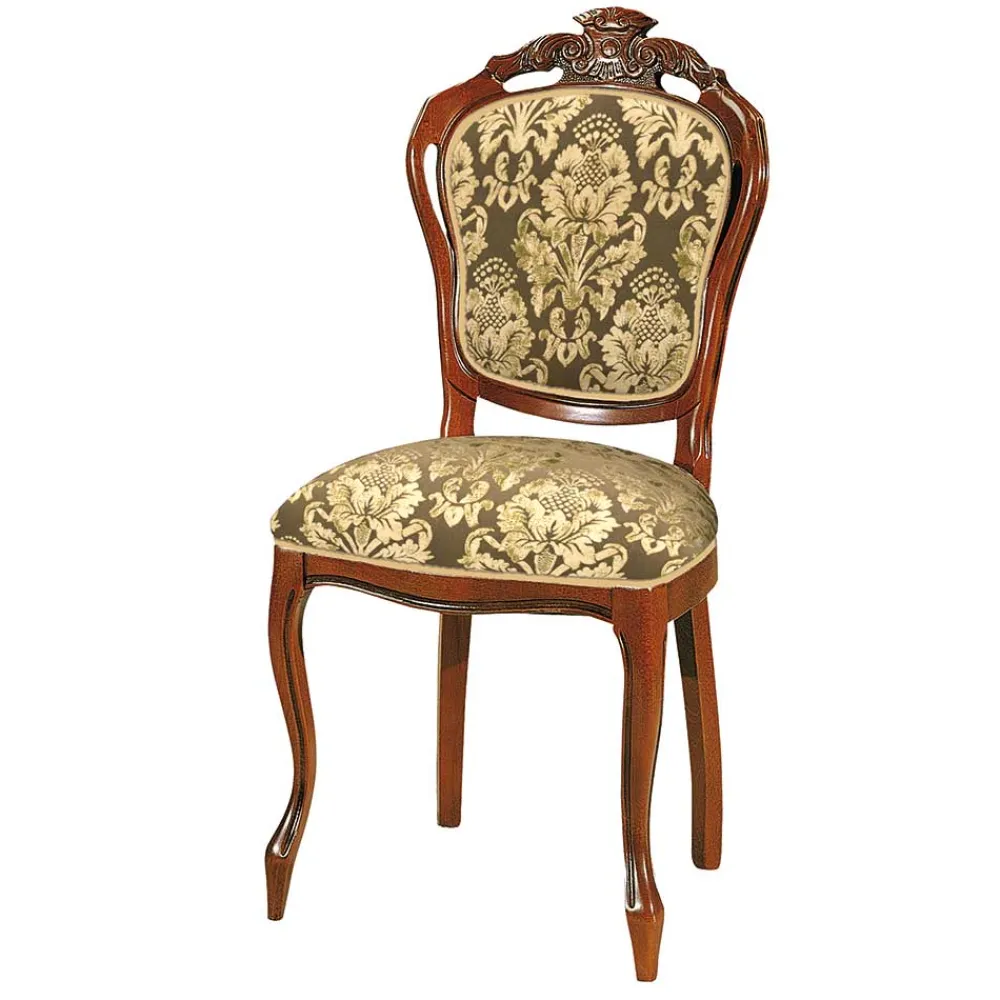 - Formschöner Polsterstuhl in Beige, Gold und Nussbaumfarben
