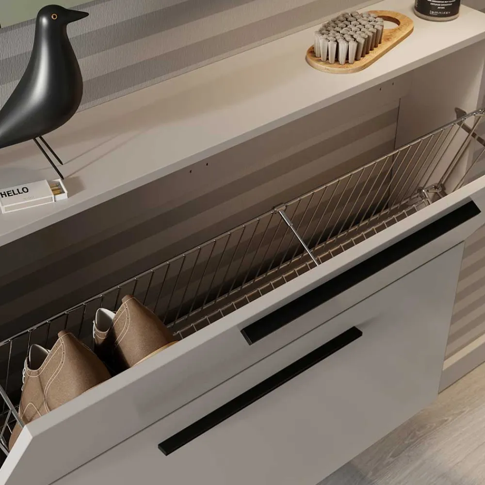 - Zwei Schuhklappen bieten Platz für bis zu maximal acht Paar Schuhe