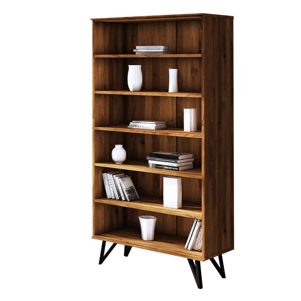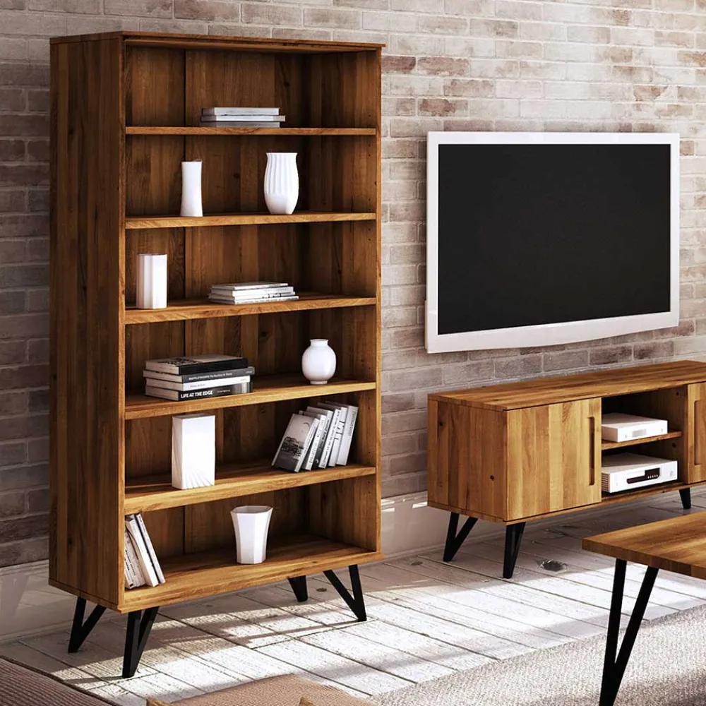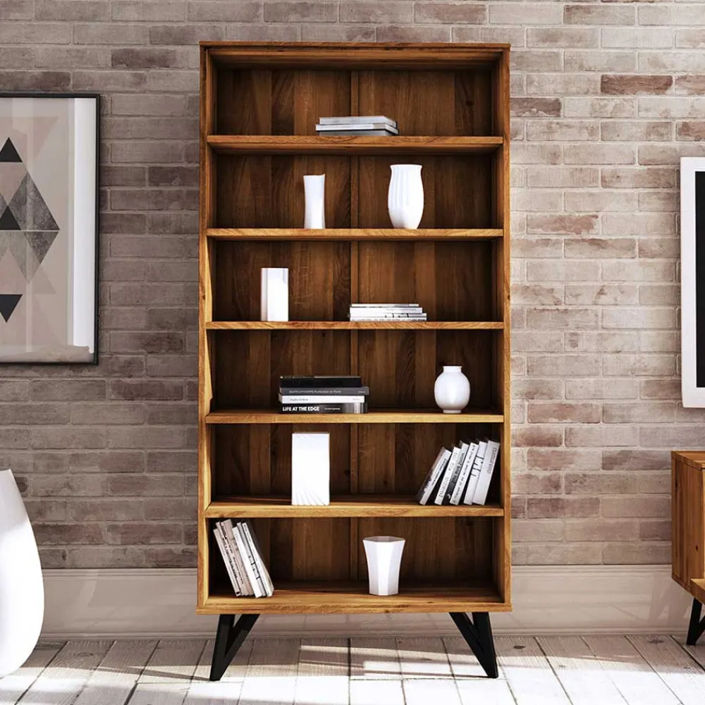 - Rustikales Bücherregal in Wildeichefarben und Schwarz