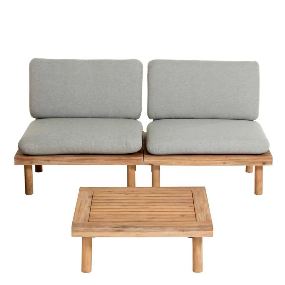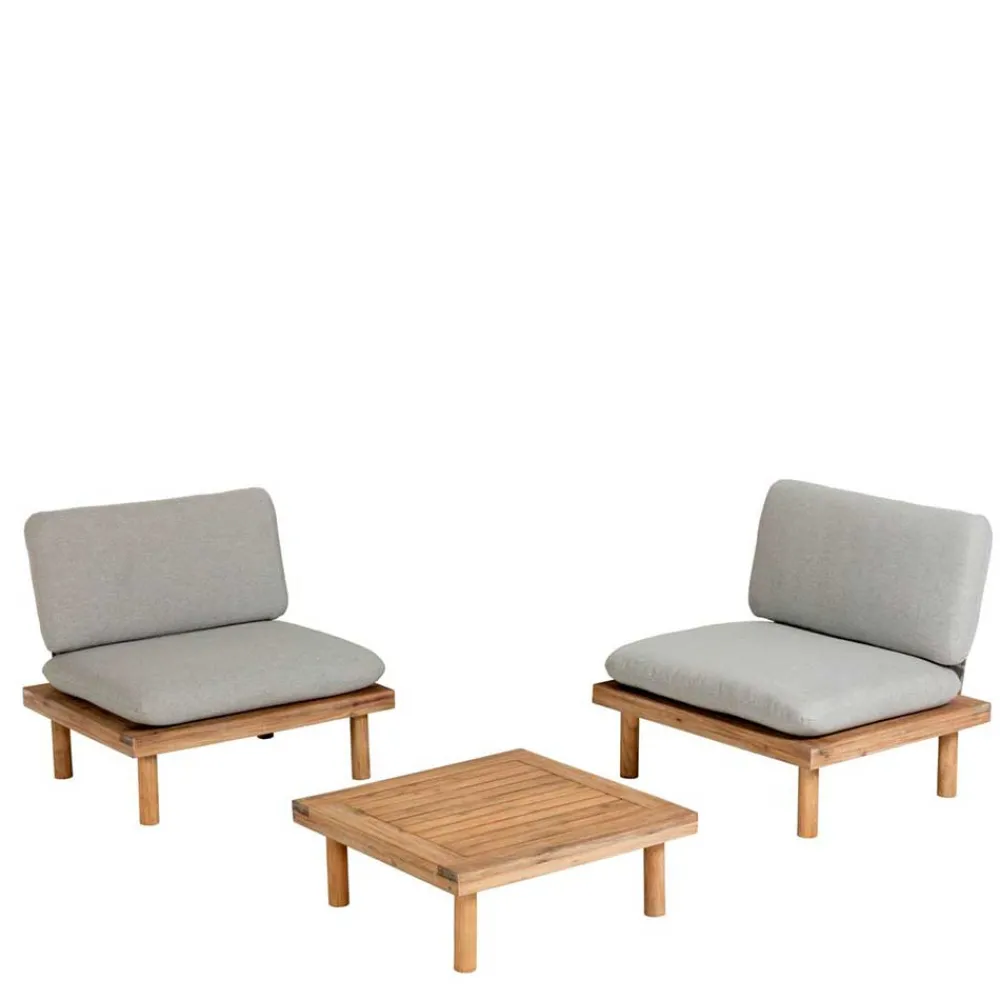 - Hervorragende Lounge Sitzgruppe in Akazie und Hellgrau